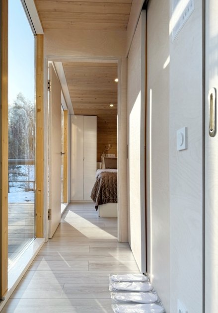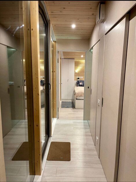 Комфортный современный дом Twin с панорамными окнами. В доме две раздельные спальни и два санитарных узла. В каждую часть дома предусмотрен собственный вход.
