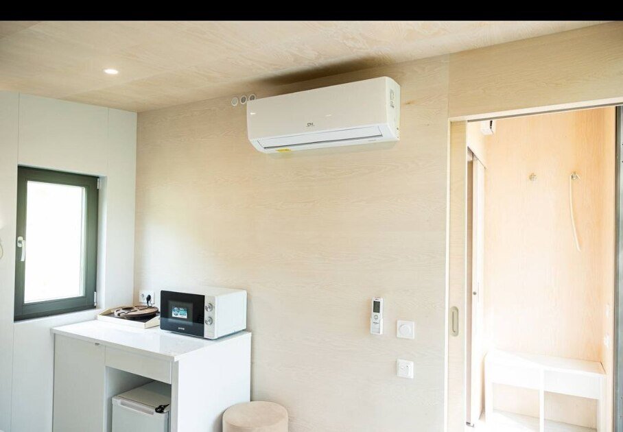 Дом расположен в живописном месте на территории глэмпинга у леса.