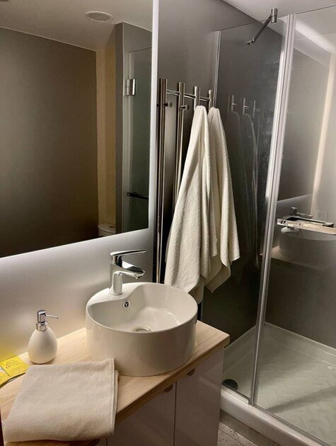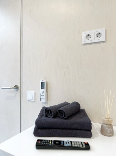 Удобства: Wi-Fi, Smart TV, два кондиционера, холодильник, набор посуды, две двуспальные кровати king size с ортопедическими матрасами, электрический чайник, микроволновая печь, одноразовый зубной набор, тапочки, полотенца, средства гигиены, плотные шторы.