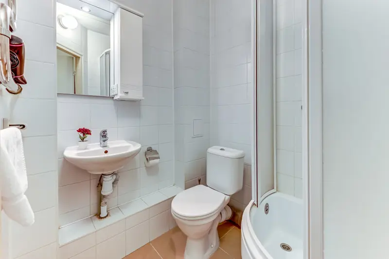 Компактный одноместный номер с собственной ванной комнатой и балконом.