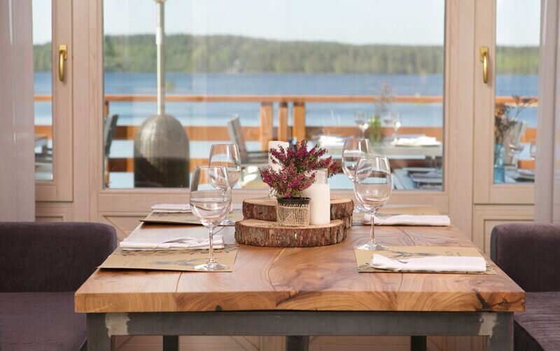 Читать полностьюРесторан «Вереск» в каждой детали вдохновлен чистотой и естественностью природы. Панорамный вид на сосновый лес и берег озера, оборудованные террасы и спуски к воде, много дерева в интерьерах и комфорт в каждой детали. Атмосферу ресторана и непреодолимое желание возвращаться к нам почаще создает фирменный дружелюбный сервис от каждого члена команды.