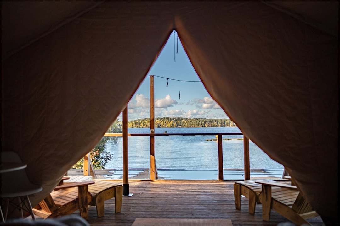 - у каждого лоджа — собственная крытая терраса с видом на озеро,