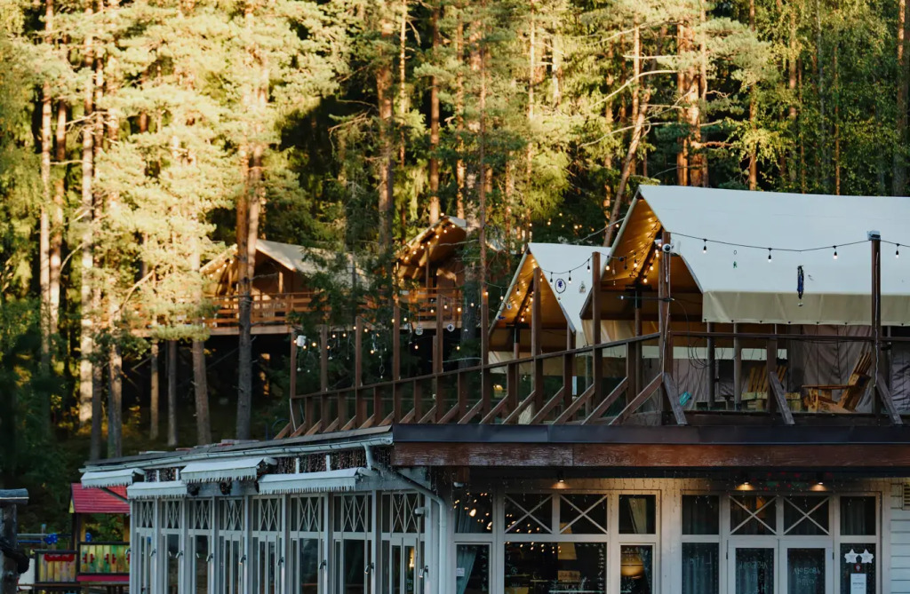 Новый глэмп-отель «Террасы» открылся в 2024 году на территории эко-парка «Вереск». Здесь, на берегу лесного озера, всего в часе езды от центра Петербурга расположились просторные террасы с обустроенными всесезонными сафари-лоджиями — панорамными номерами в эстетике природности и комфортных путешествий.
