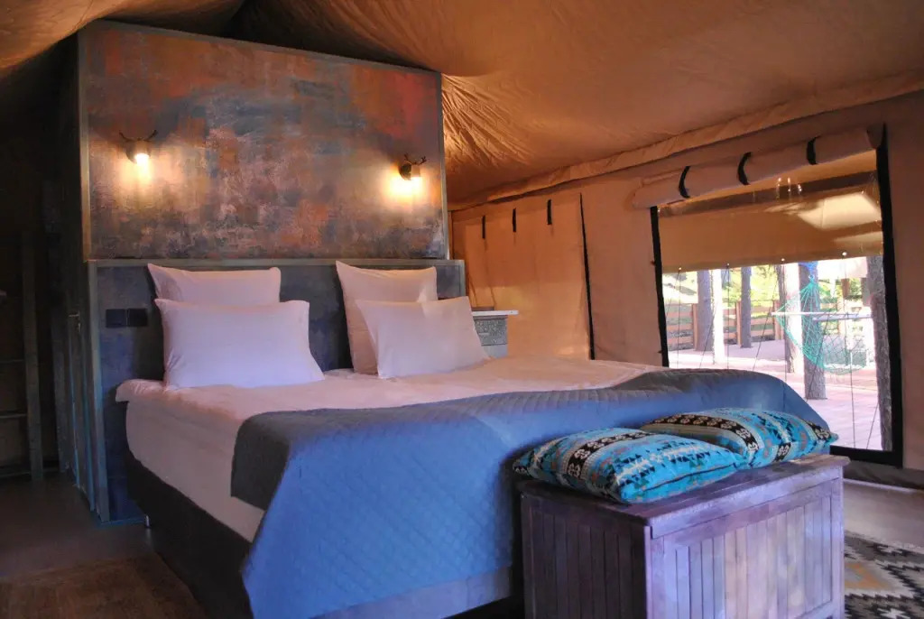 Сафари‑лодж на холме с видом на озеро — атмосферный глэмпинг с авторским интерьером.
