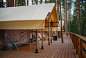 У каждого из лоджей есть небольшая закрытая зона для отдыха и релакса и общая просторная площадка с панорамным видом на тихое озеро и сосновый лес и конечно же, банные купели в окружении вековых сосен.