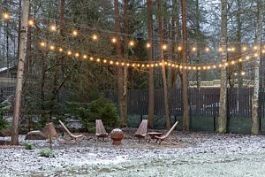 На территории обустроены: зона для костра со стульями и столиком, беседка-гриль для отдыха и чаепитий, а также бережно отреставрированный старинный погреб. Высокоскоростной Wi-Fi доступен на всей территории участка.