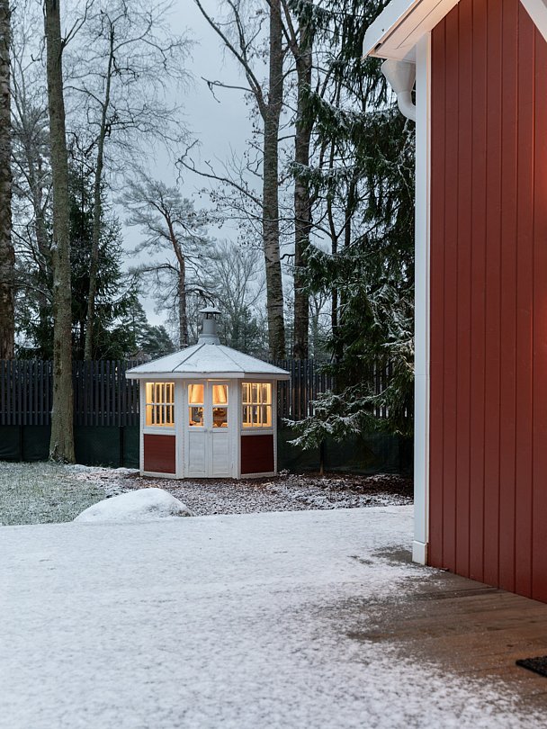 «Хюгге Эйнари» — это воплощение скандинавской дачной архитектуры, утопающее в соснах и омываемое заливом. Своё название дом унаследовал благодаря исторической записи: земли принадлежали шведу Эйнару Гранстрему. От его построек до наших дней сохранился лишь погреб. Сам дом, не имея статуса исторического памятника, бережно воссоздает облик загородных резиденций начала прошлого столетия.