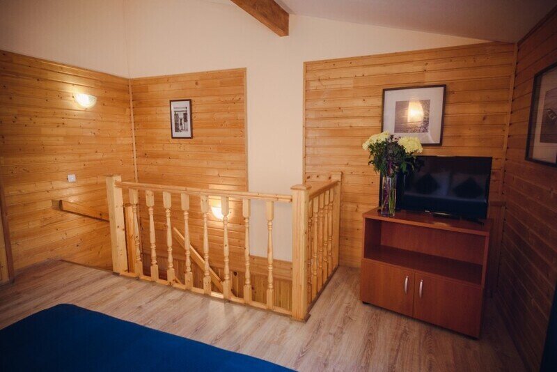 Шикарный номер с гостиным уголком на первом этаже, в вашем распоряжении телевизор, электрический чайник, холодильник и сейф. Ванная комната укомплектована феном, шампунь, гель для душа, мыло также предоставляется.
