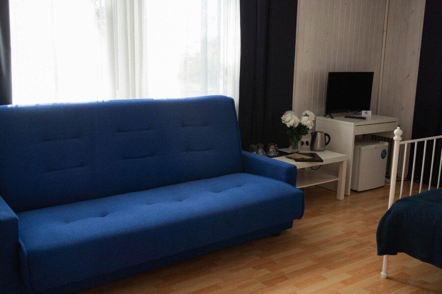Уютный номер с гостиным уголком, в вашем распоряжении телевизор, электрический чайник, холодильник и сейф. Ванная комната укомплектована феном, шампунь, гель для душа, мыло также предоставляется.