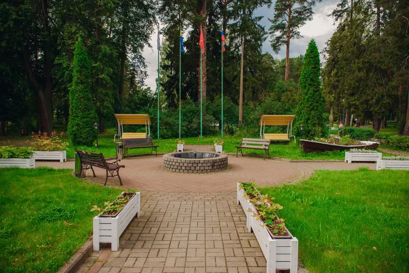 «Парк-Отель» находится в курортном районе Зеленогорска, недалеко от Санкт-Петербурга, у Финского залива. Это место предлагает два явных преимущества для отдыхающих: свежий кислород и полное отсутствие городского шума.
