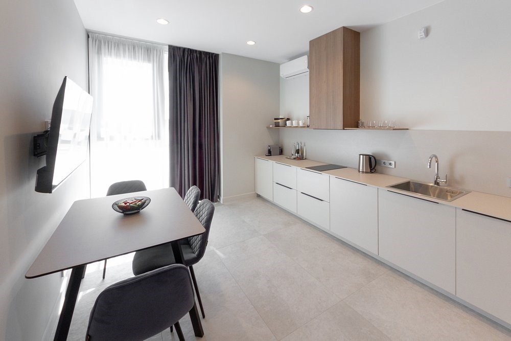 два телевизора, кабельное телевидение, Wi-Fi, интернет, холодильник, кондиционер, светильник, фен, плита для приготовления пищи, кофемашина, микроволновая печь, утюг, обогреватель, душевая кабина, теплый пол, халаты, банные полотенца, тапочки, гладильная доска, стулья, шкаф для одежды, вешалки, обеденный стол, зеркало, чайный набор, набор посуды, сейф, посудомоечная машина, стиральная машина, чайник, унитаз, раковина, мягкая мебель, отопление, вид на море, плиточное покрытие, высокие потолки, стаканы, кухонная утварь, столовые приборы, туалет, сушилка для белья, цифровое тв, диван-кровать, гостиничная парфюмерия, телевизор со Smart TV, теплые полы, номер для некурящих, рабочий стол, духовой шкаф, кровать «Super king size», духовка, бутылка винаВ апартаментах