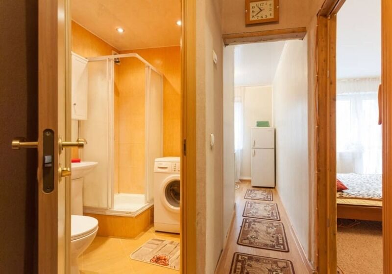 Светлые однокомнатные апартаменты на 4-м этаже с балконом. Есть парковка, интернет. Кухня со встроенной бытовой техникой и холодильником. В апартаментах есть также гладильные принадлежности, стиральная машина, фен. Спальня имеет двухместную кровать и телевизор.