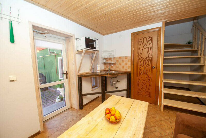Дом расположен в центре старого города, в тихом районе, до моря 7 минут пешком. Дом из натуральных материалов ( Дерево и Камень). На первом этаже общая кухня с камином , туалет и БАНЯ , на втором этаже 3 номера ( в каждом номере душ и туалет). В доме есть своя коптильня для рыбы , хозяин с радостью предложит гостям свеже-копченую рыбу! Есть внутренний двор с мангалом . В номерах деревянные полы , Диваны , тумбочки, журнальные столики, кожаные кресла, кухонная мебель.