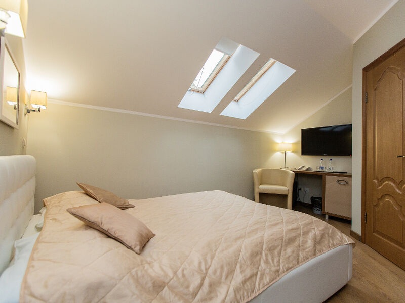 Путешествие с семьейМинус один-отдых был коротким!Отдыхали в номере с монсардой. Номер уютный, чистый, окошки в крыше, как положено такому номеру, можно увидеть из окна Кирхе, которая расположена очень близко к отелю. В номере все удобства, полотенца, гели/шампуни, фен; кондиционер и тд. Все что нужно для комфортного отдыха. Влажная уборка каждый день, смена белья раз в три дня, все как надо.