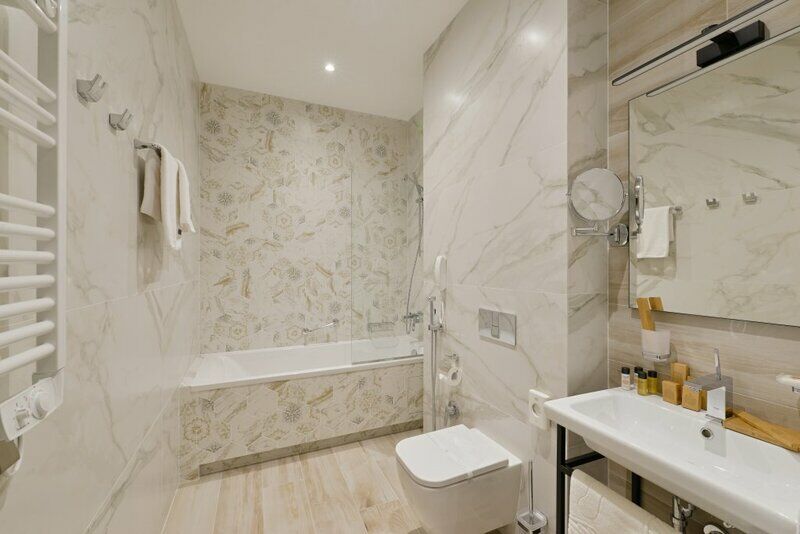 Санузел с ванной, ТВ, мини-холодильник
