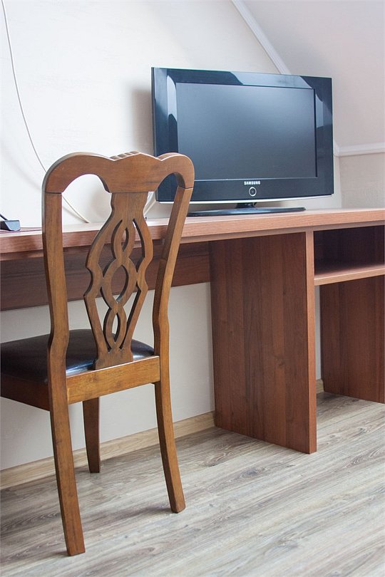 кабельное телевидение, Wi-Fi, интернет, светильник, фен, вентилятор, микроволновая печь, утюг, душевая кабина, санузел, банные полотенца, тапочки, гигиенические средства, две односпальные или большая двуспальная кровать, гладильная доска, тумбы, стулья, шкаф для одежды, вешалки, обеденный стол, багажная тумба, зеркало, две комнаты, чайник, унитаз, косметическое зеркало, обеденная зона, отопление, кулер на этаже, вид во двор, кухонная посуда, стаканы, кухонная утварь, столовые приборы, туалетные средства, цифровое тв, телевизор с плоским экраном, мини-холодильник, мини-кухня, мансардные окна, номер для некурящих, рабочий стол, фригобар, фумигатор, без питомцевВ гостиничном номере