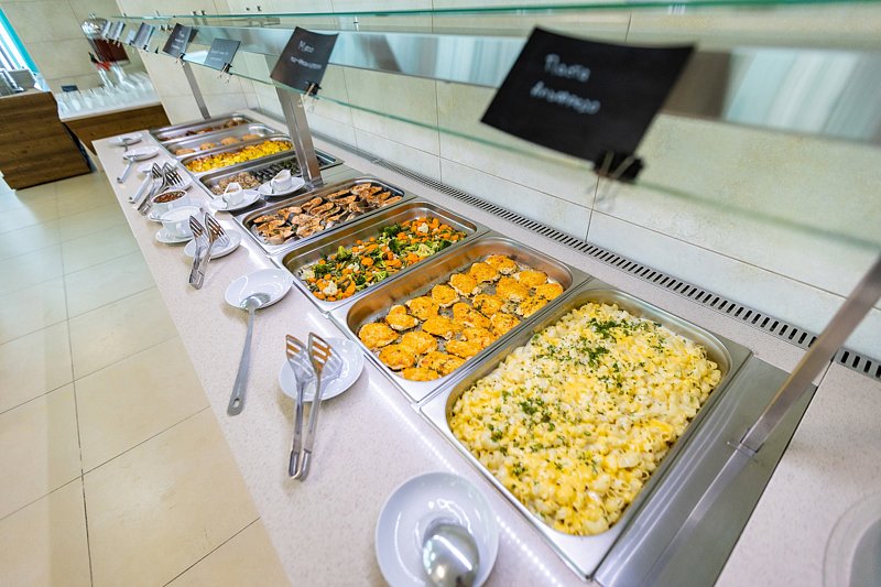 Просторная столовая с видом на море приглашает своих гостей насладиться изысканными кулинарными изысками в формате полного пансиона «Шведский стол». Здесь вы найдете богатый выбор блюд на любой вкус.