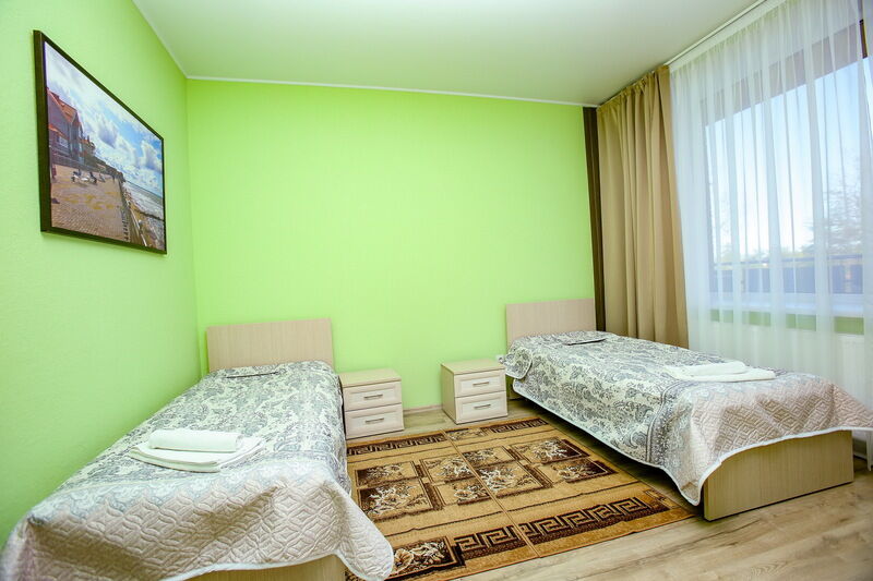 Номера есть с видом на море и на город. Пляж в 50 м от центра отдыха, автовокзал города Зеленоградска в 600 м. Предлагается размещение с полным пансионом (завтрак, обед и ужин с выбором блюд по меню).