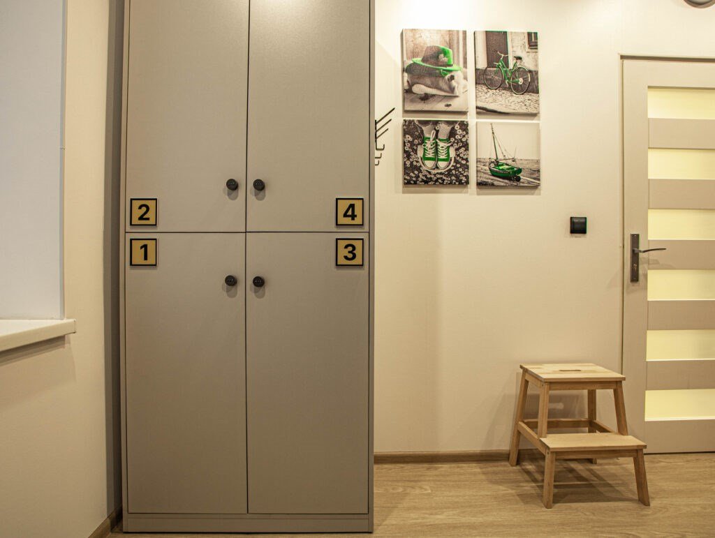 шкаф для одежды, письменный стол, багажная тумба, зеркало, вешалки-плечики, открытый шкаф, две двухъярусные кроватиВ месте в номере