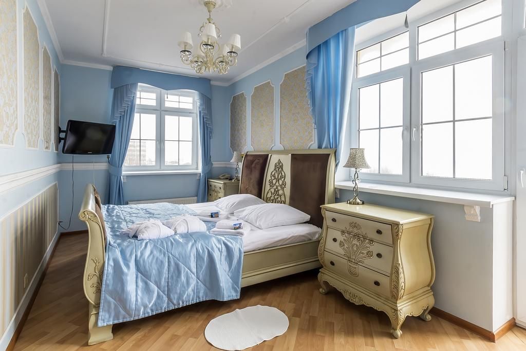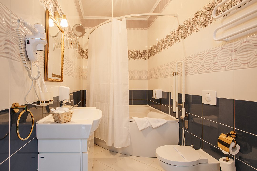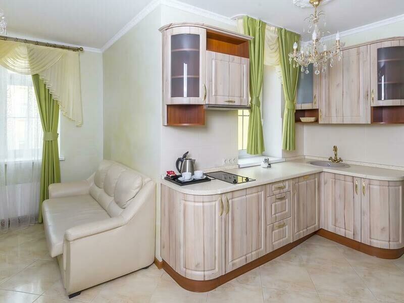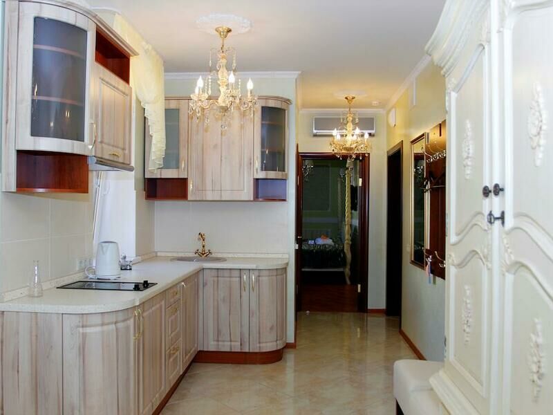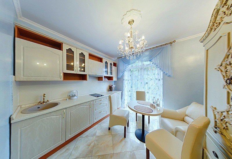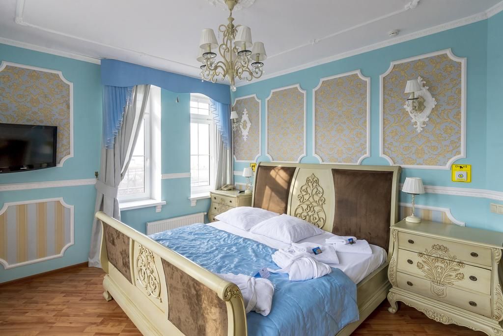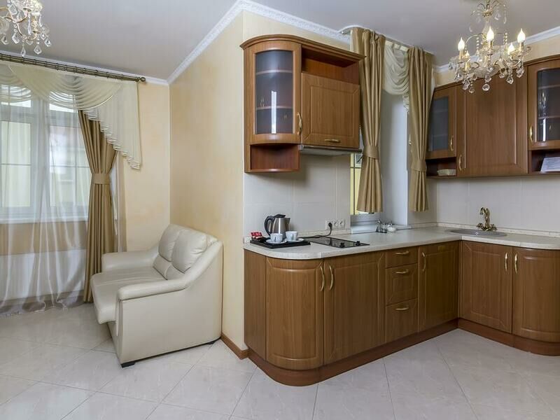 Делюкс - площадь номера от 35 кв.м. с одной двуспальной кроватью. Удобства номера: Гостиная-столовая с кухней: холодильник, плита, стол, стулья, диван, телевизор, посуда, чайный набор. Спальная комната: двуспальная кровать, комод/зеркало, шкаф, телевизор, кондиционер, отопление, телефон, сейф. Ванная комната: ванная, туалет, раковина, фен, бесплатные туалетно-косметические принадлежности, халат, тапочки. Вид из окна на город. В номере возможно размещение дополнительных мест для взрослых и детей. Теперь Ваши любимые домашние питомцы/друзья, могут путешествовать вместе с вами, так как в этом номере возможно проживание с домашними животными (собаки и кошки). Предварительная заявка - обязательна.
