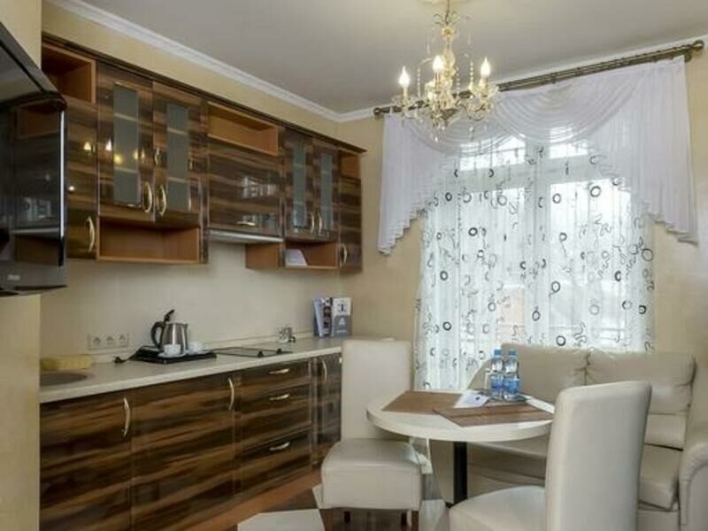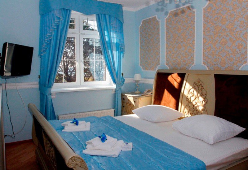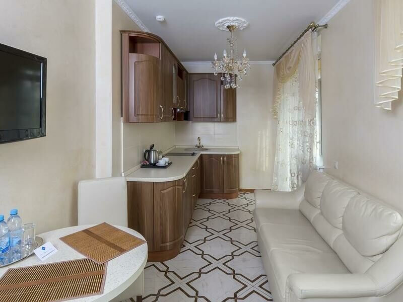 Небольшое четырехэтажное здание, разместившееся на тихой и спокойной улицы города, рассчитано на размещение 24 гостей. Отель предлагает просторные номера категории Делюкс и Апартаменты. Все комнаты хорошо меблированы, есть необходимая бытовая техника, санузел с душем или ванной, апартаменты оснащены кухней.