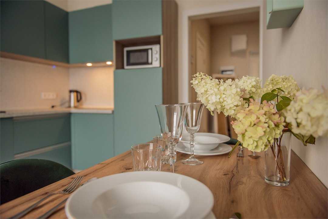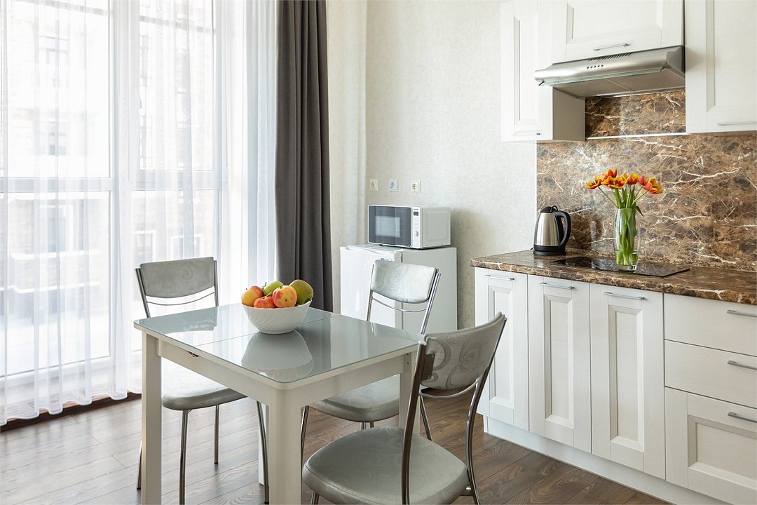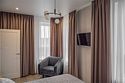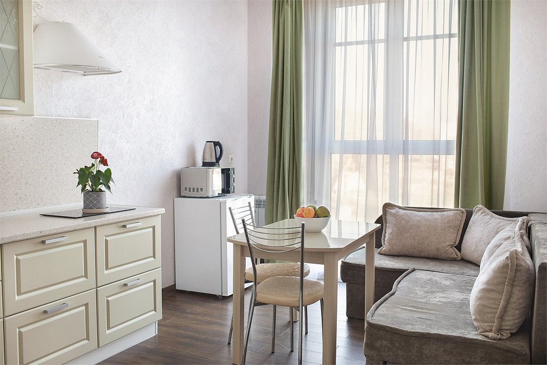 Апартаменты категории "Улучшенные". Апарт-отель «Резиденция» в 100 метрах от побережья Балтийского моря! У нас созданы все условия для комфортного отдыха на море. Вам понравится наш домашний уют. Панорамные окна добавляют света, а 3-метровые потолки увеличивают пространство. Апартаменты категории "Улучшенные" включают в себя 1 двуспальную кровать, 1 диван-кровать. Стоимость актуальна для проживания 2 человек. Каждый дополнительный гость - 1000 руб. Апартаменты комфортно вмещают четырех человек. Уважаемые гости Апарт-отеля "Резиденция"! Стоимость услуг за проживание рассчитывается согласно цене Актуального тарифа в день оплаты Вашей брони.Услуги и удобства