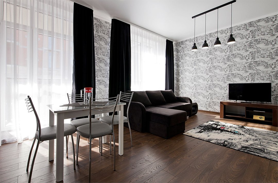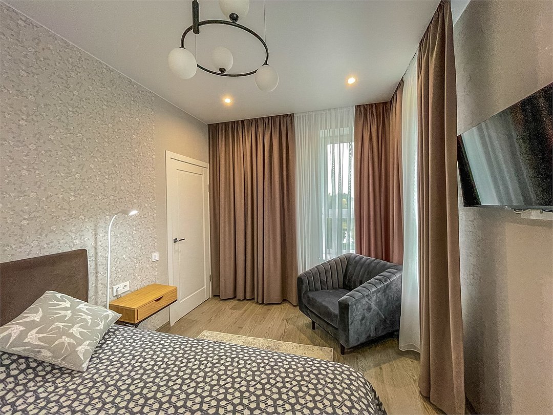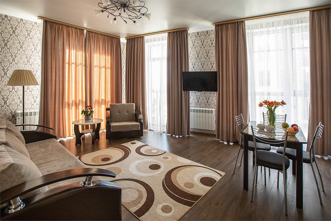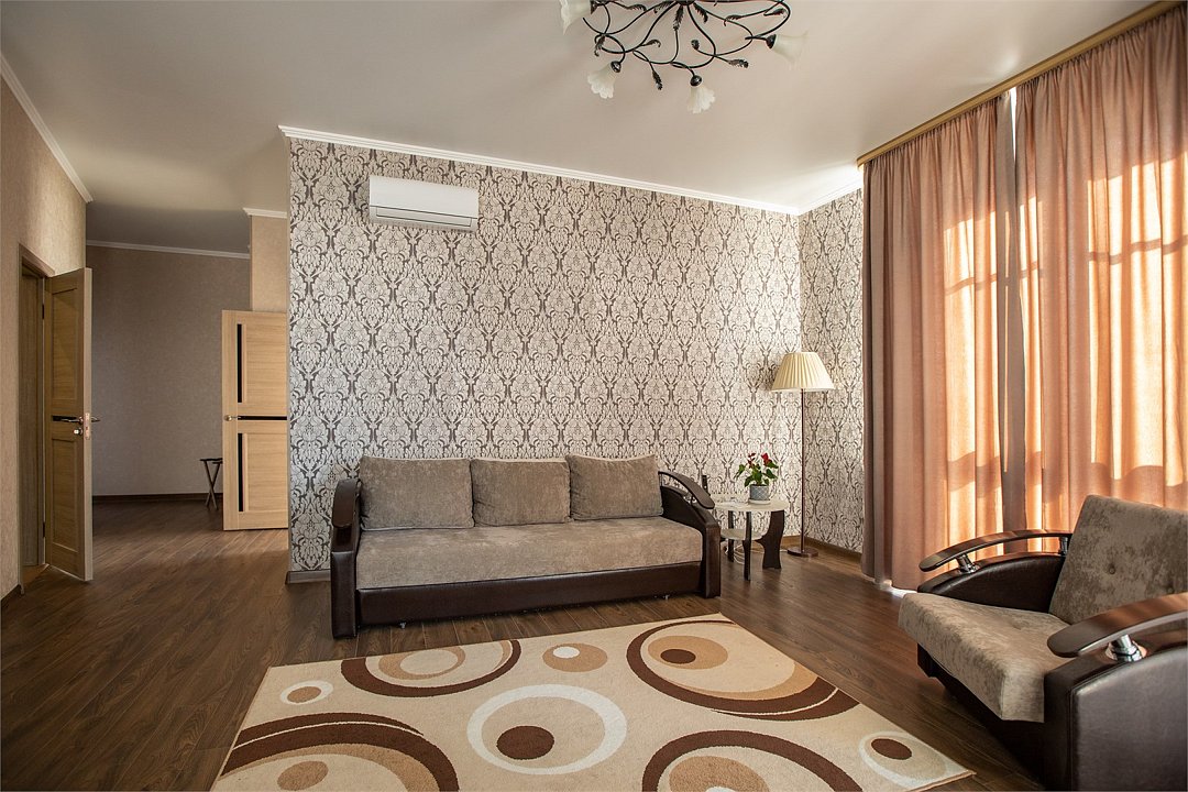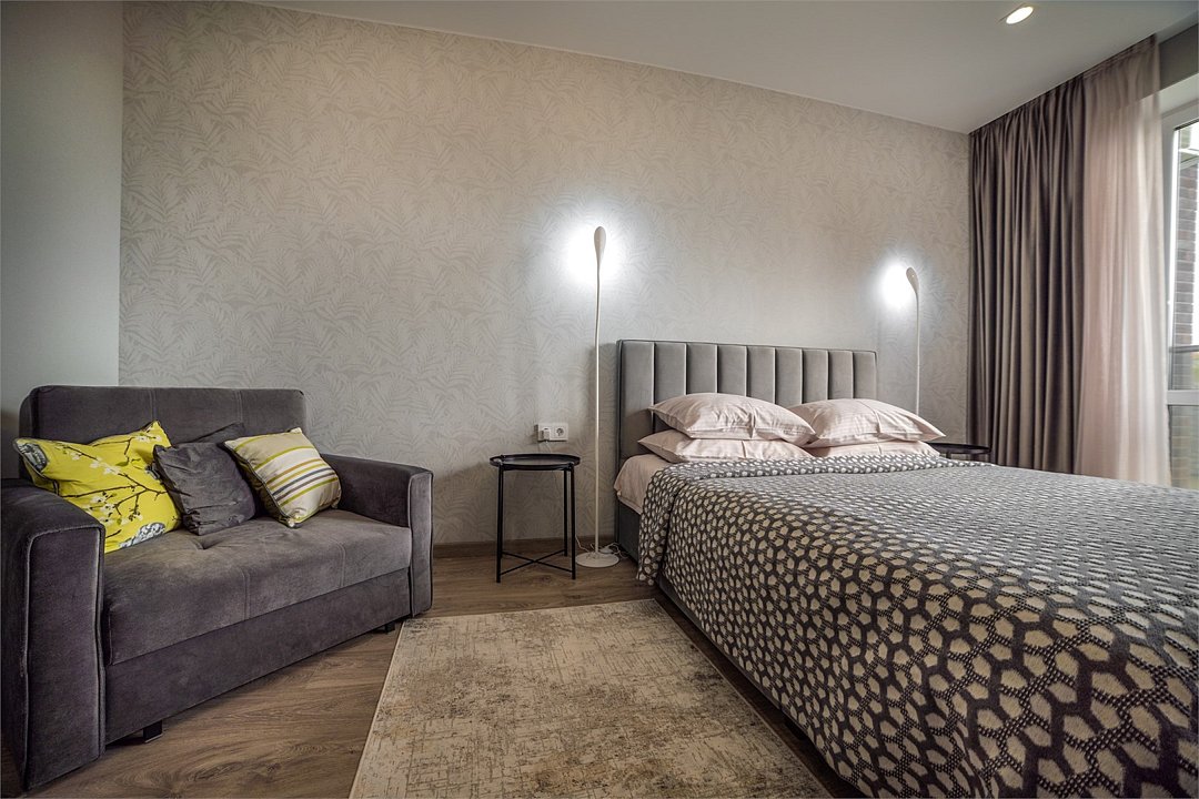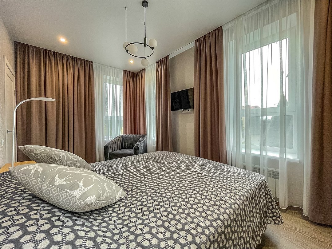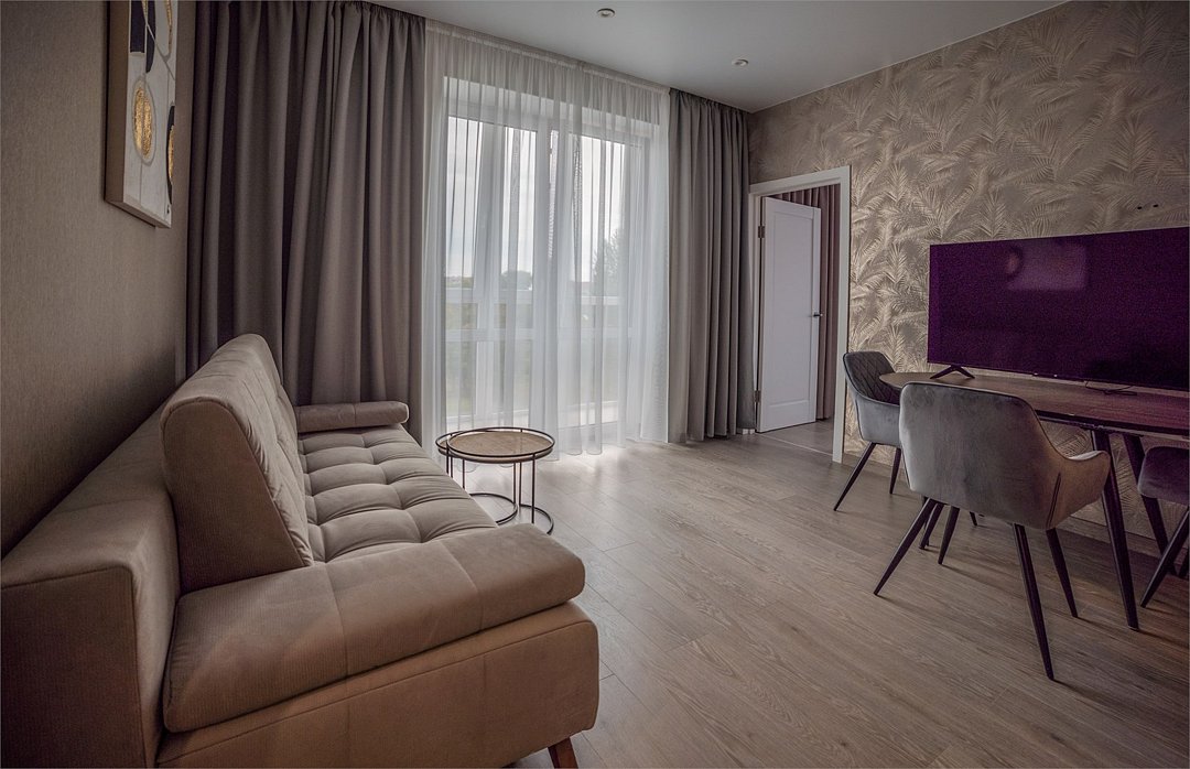 Апартаменты категории "Делюкс". Апарт-отель «Резиденция» в 100 метрах от побережья Балтийского моря! У нас созданы все условия для комфортного отдыха на море. Вам понравится наш домашний уют. Панорамные окна добавляют света, а 3-метровые потолки увеличивают пространство. Апартаменты категории "Делюкс" включают в себя 1 двуспальную кровать, 1 диван-кровать. Стоимость актуальна для проживания 2 человек. Каждый дополнительный гость - 1000 руб. Апартаменты комфортно вмещают четырех человек. Можно заказать отель, выбрав один из 14 комфортабельных номеров в разных ценовых категориях – Студио, стандарт, улучшенные и Делюкс. Уважаемые гости Апарт-отеля "Резиденция"! Стоимость услуг за проживание рассчитывается согласно цене Актуального тарифа в день оплаты Вашей брони.Услуги и удобства
