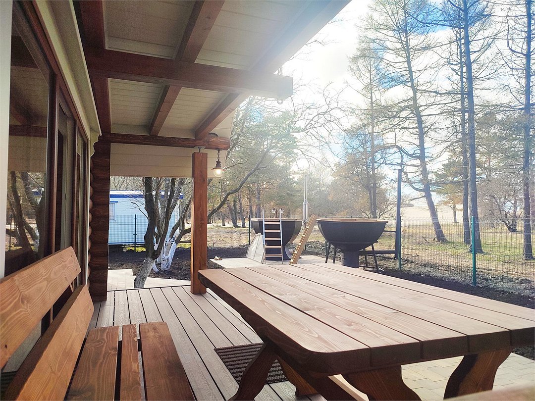 Дом на берегу моря в шаговой доступности от пляжа. Чистый воздух и окружающая природа - залог хорошего отдыха. Отдельно стоящий дом из сруба с тщательно подобранными атрибутами интерьера с экологичной атмосферой, большой парной с новейшим оборудованием, душем, опрокидывающимся ведром и банным чаном. Отличное сочетание дизайна с функциональностью, которое предлагаем вам попробовать. После прогулок по пляжу можно расслабиться в бане и понежиться в тёплой воде банного чана вдыхая свежий морской воздух. В пространстве двухэтажного сруба мы разместили: 1 этаж: ·Уютная гостиная с диваном, телевизором, Wi-Fi и обеденной зоной; ·Зона кухни, включающая в себя индукционную плиту, холодильник, микроволновку, чайник, всю необходимую посуду; ·Парная; ·Санузел с необходимыми индивидуальными принадлежностями и феном; ·Душевая с опрокидывающимся ведром; ·Открытая терраса с обеденной зоной; 2 этаж: ·Спальня с двухместной кроватью; ·Открытый балкон с видом на лес и море; Территория огорожена, включает в себя: ·Парковочное место для автомобиля; ·Зона барбекю с мангалом. В стоимость проживания входит: - 2 часа бани -полотенца -простыни -халат -тапочки Дополнительно можно заказать чан на дровах 4000₽ Вместимость 4 чел , если свыше 1000₽ доплата в сутки за чел При заселении взимается возвратный залог в размере 5000₽ Уборка производится 1 раз в 4 дня, для вызова горничной необходимо связаться с Администрацией.Услуги и удобства