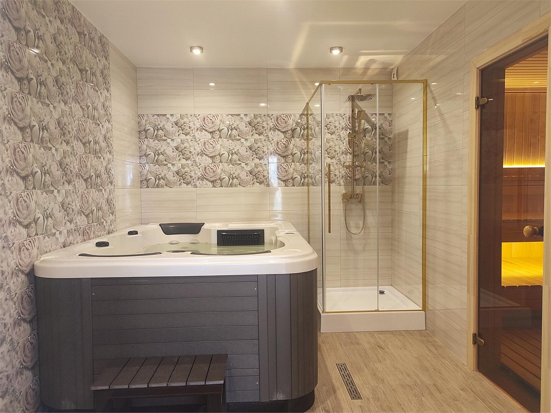 В условиях современного ритма жизни дом с баней СКАНДИ является островком релаксации, душевного и физического здоровья. Приглушенные, натуральные тона СКАНДИ помогут расслабить эмоциональный фон, а парная приведет в тонус тело. В пространстве этого дома комфортно провести время в компании друзей и родных. В пространстве двухэтажной секции мы разместили: 1 этаж: ·Обеденная зона с телевизором и Wi-Fi; ·Зона кухни, включающая в себя индукционную плиту, холодильник, микроволновку, чайник, всю необходимую посуду; ·Парная; ·Санузел с необходимыми индивидуальными принадлежностями и феном; ·Душевая; ·Функциональное 3-4 местное джакузи; ·Открытая терраса с обеденной зоной; 2 этаж: ·Спальня с двухместной кроватью; ·Зона отдыха с двумя удобными раскладными диванами и столиком; Территория огорожена, включает в себя зону барбекю с мангалом. Парковочное место для автомобиля предоставляется. Вместимость 4 человека. -в стоимость сутки проживания входит 2 часа бани и 2 часа джакузи -полотенца -простыни -халат -тапочки Дополнительно можно заказать чан на дровах 4000₽ Вместимость 4 чел , если свыше 1000₽ доплата в сутки за чел При заселении взимается возвратный залог в размере 5000₽ Уборка производится 1 раз в 4 дня, для вызова горничной необходимо связаться с Администрацией.Услуги и удобства