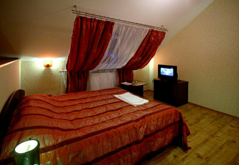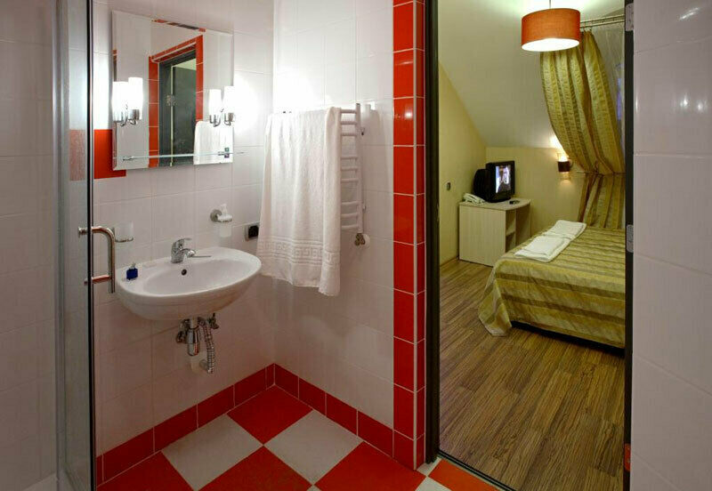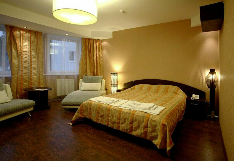 Двуспальная кровать, телевизор, телефон, сейф, бесплатный Интернет по средствам подключения, WI FI, фен, Т/В. Выборочно, согласно дизайнерскому замыслу, номера оборудованы ваннами или душевыми кабинами, биде и другими удобствами.