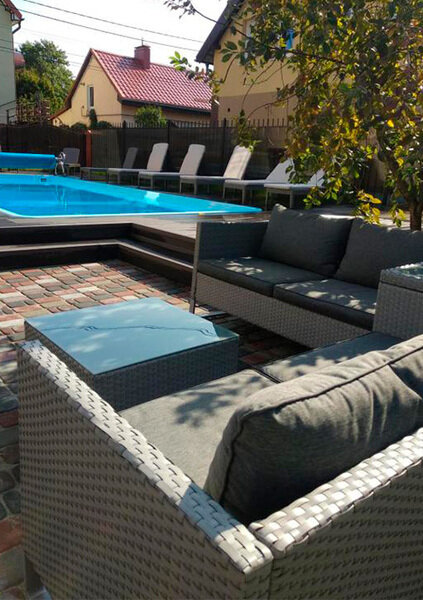 Тип бассейна: открытый бассейнВода в бассейне: подогреваемый бассейнРядом с бассейном: шезлонги, зонтикиРазмеры: 4 x 8 мПлощадь: 32 м²Режим работы бассейна: с апреля по ноябрь.