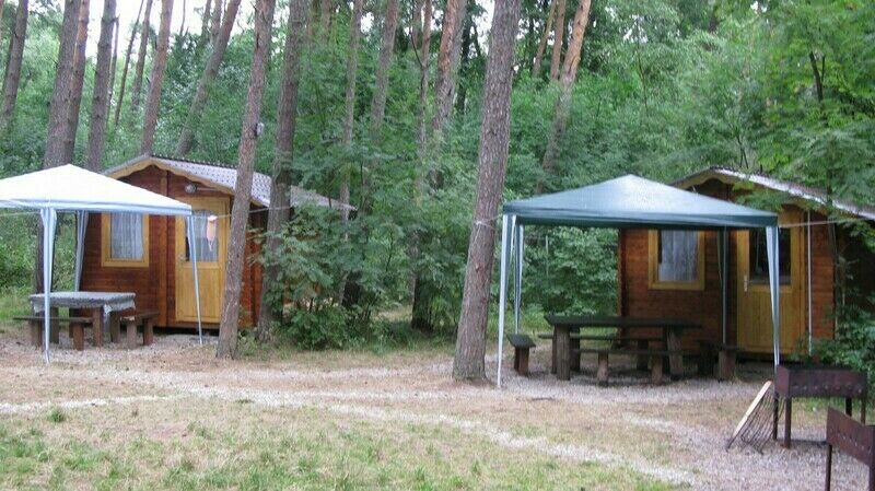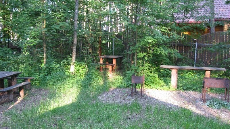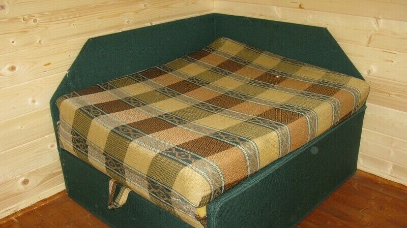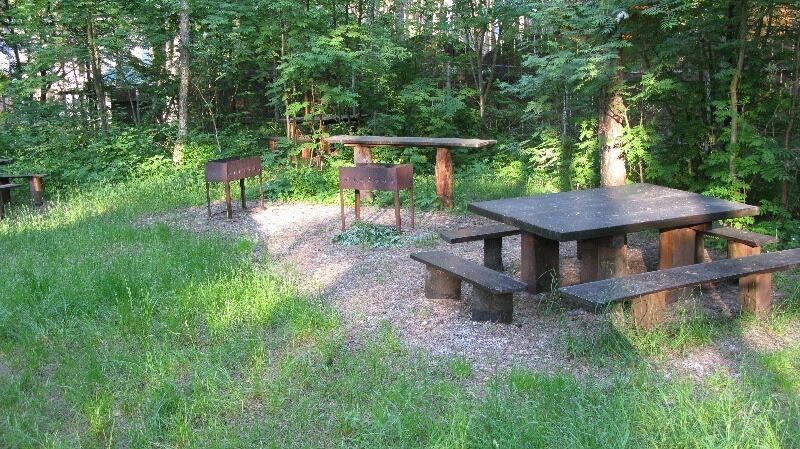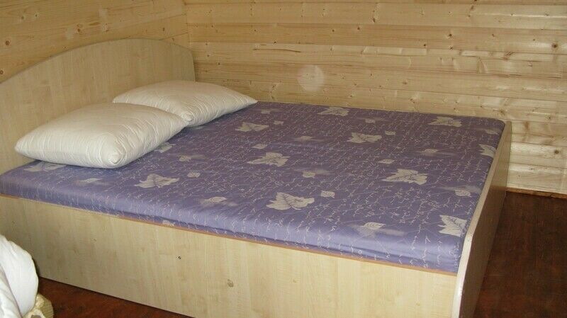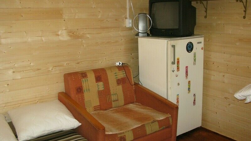 В домике двухспальная кровать или двухместный диван, кресло-кровать, столик и стулья, TV, холодильник.