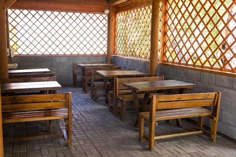 Отдельное здание возле парковки автомобилей, комплексное питание, завтрак 09:00-10:00; обед 13:30-14:30; ужин 19:00-20:00.