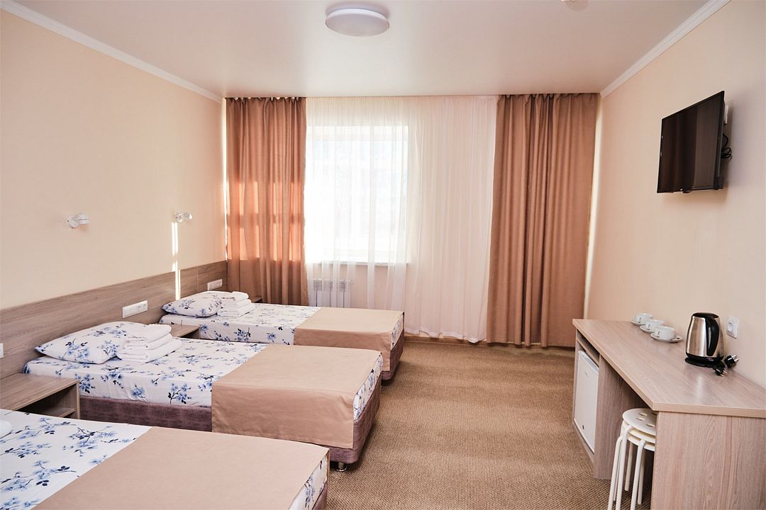 Семейный отдыхДостоинстваПитание 3 разовое,все очень вкусно и красивая подача блюд,проживание номера чистые,все необходимое есть(холодильник,чайник,чашки),доброе отношение ,территория чистая,пляж оборудован,лежаки ,зонтики в достаточном количестве.Кафе «Придорожное»,решили отметить отъезд,завтрак был включен,а обедали в кафе и поехали домой(понравилось вкусно и недорого 1000 рублей за двоих (шашлык 2,салат,картофель фри,морс 2)