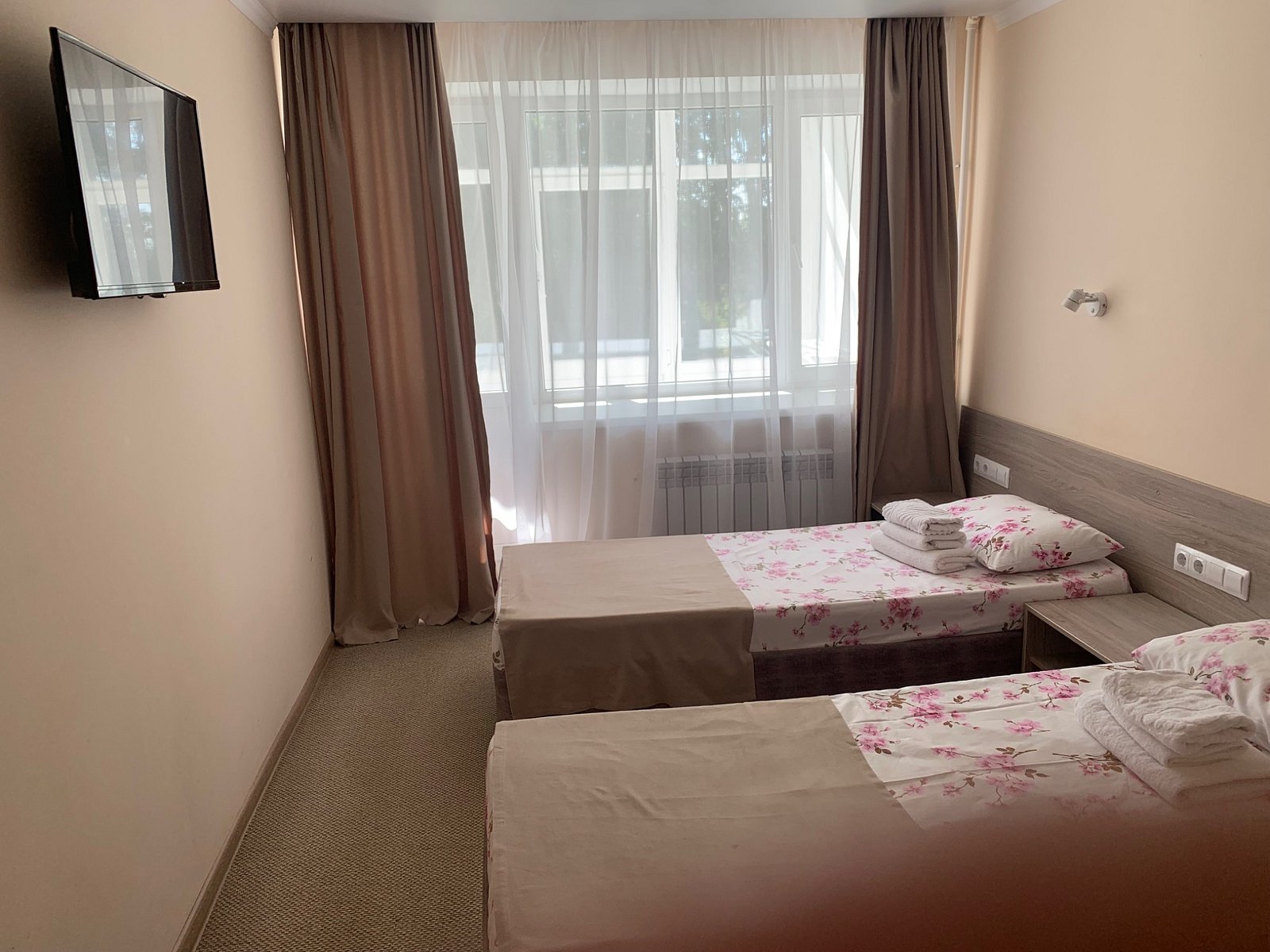 Номер с двумя кроватями размером 80х200 и всеми удобствами.