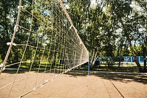 Футбольное поле, волейбольная и спортивная площадки.