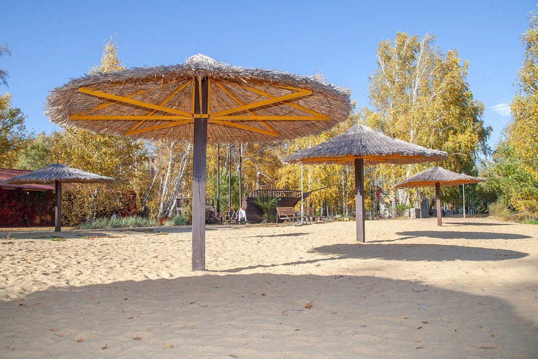 - собственный песочный пляж;