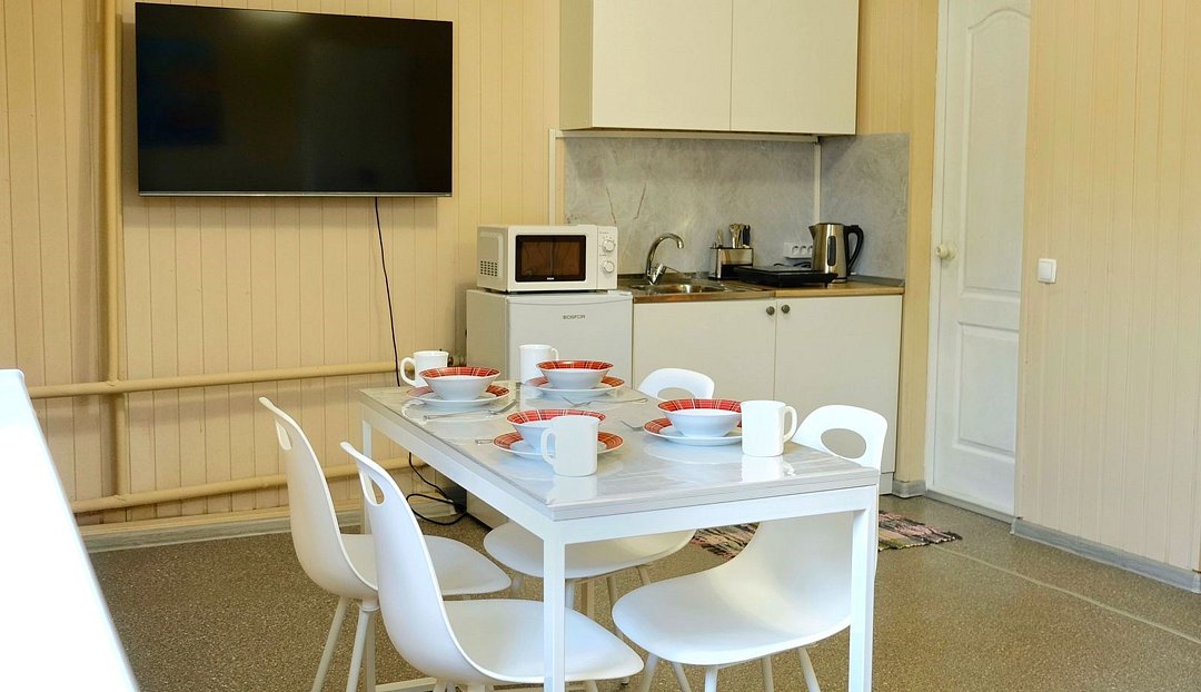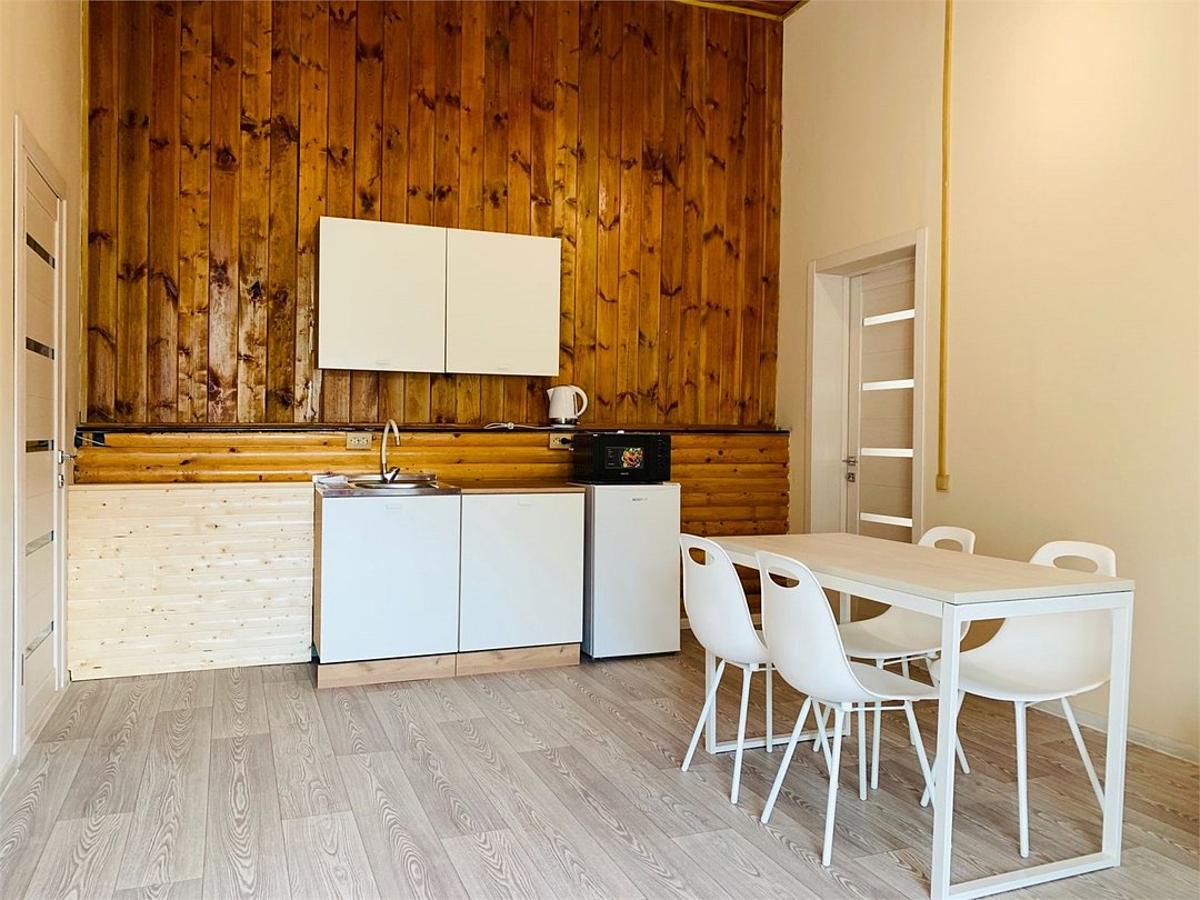 Комфортабельный просторный номер с размещением до 4-х человек. Свежий ремонт 2024г!!! В номере - кухонная зона (холодильник, мойка, электрочайник, микроволновка, индукционная плитка, посуда), обеденная зона, санузел (душевая кабина, гигиенический душ), фен, ТВ, Wi-Fi.Услуги и удобства