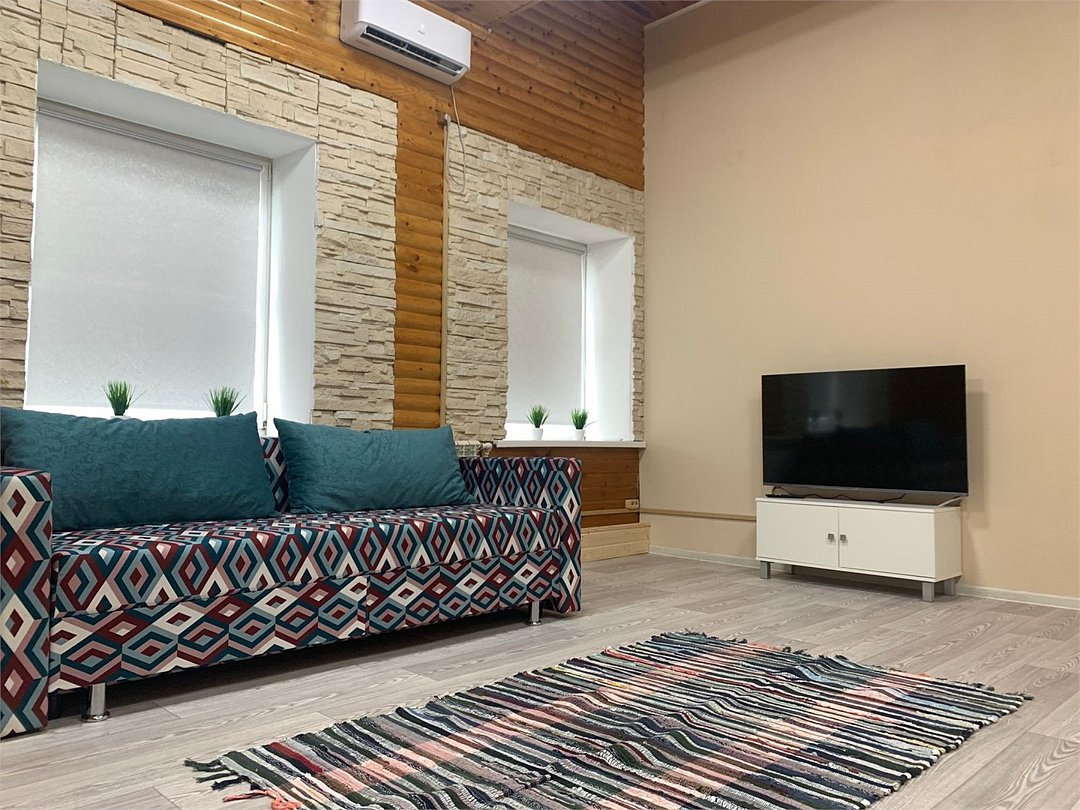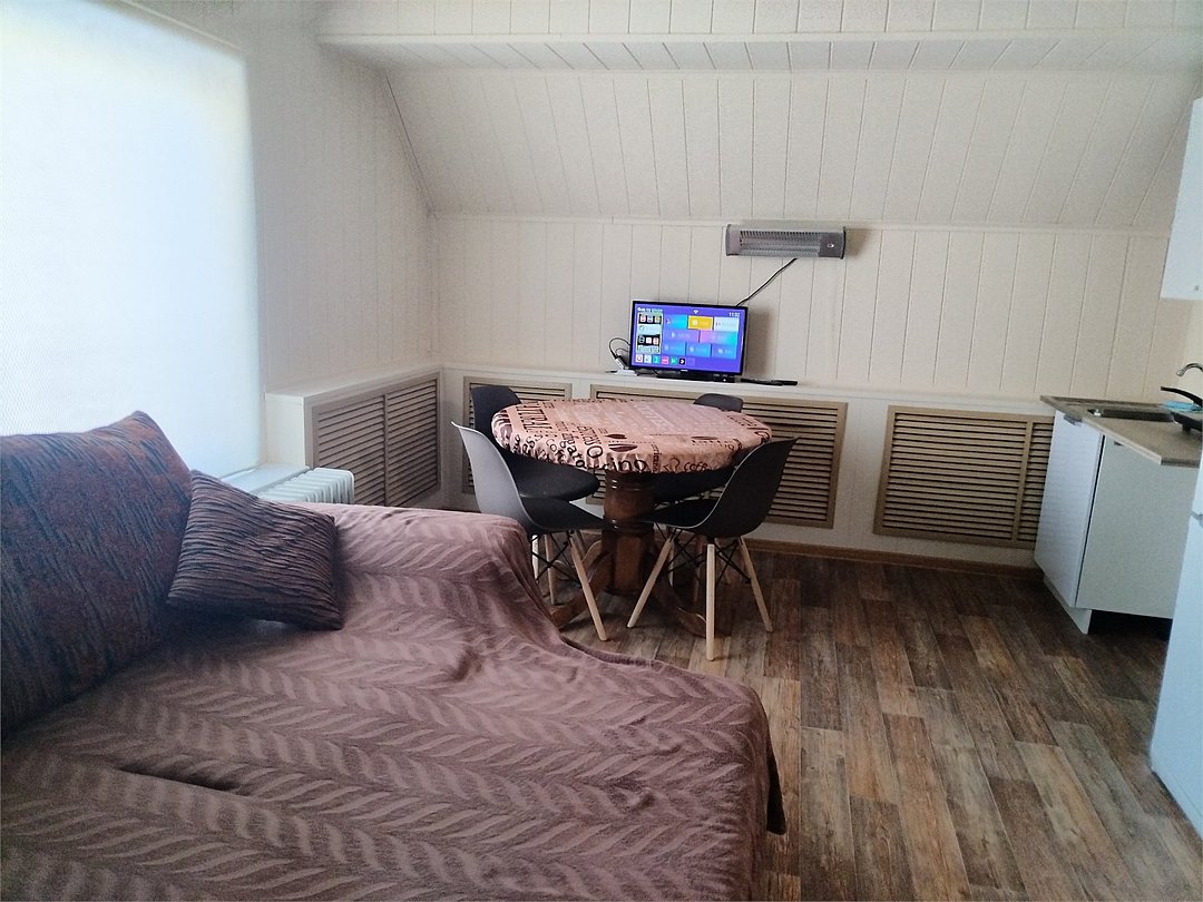 Комфортабельная просторная студия с размещением до 4-х человек. Свежий ремонт 2024г!!! Полностью новая мебель и техника!!! В номере - кухонная зона (мойка, холодильник, электрочайник, микроволновая печь, индукционная плита, посуда), обеденная зона, санузел (душевая кабина, гигиенический душ), кондиционер, фен, Smart-ТВ, Wi-Fi.Услуги и удобства