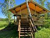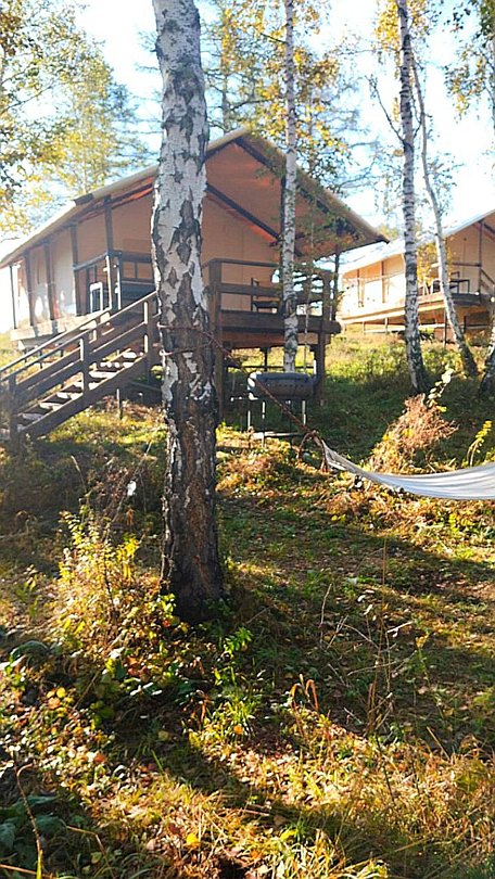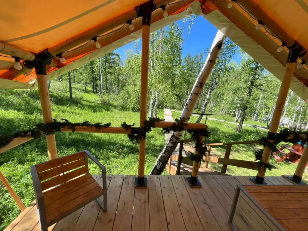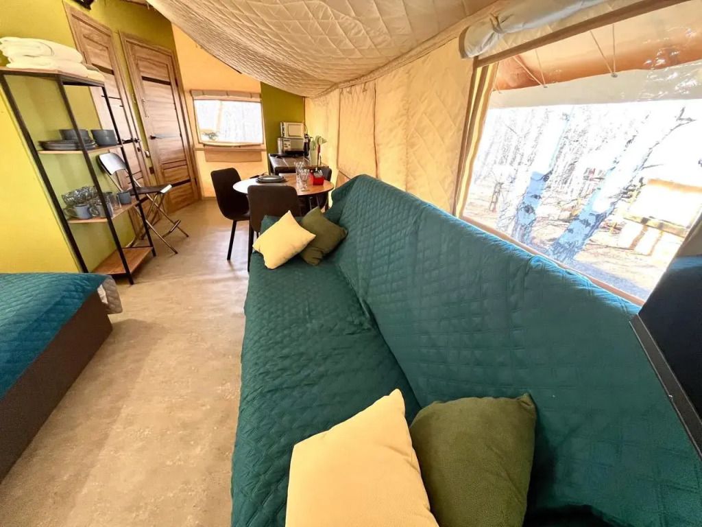 Глемпинг окружен лесным массивом, что создает идеальные условия для отдыха наедине с природой.