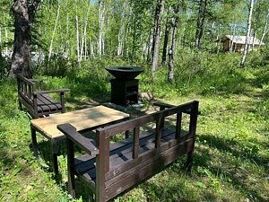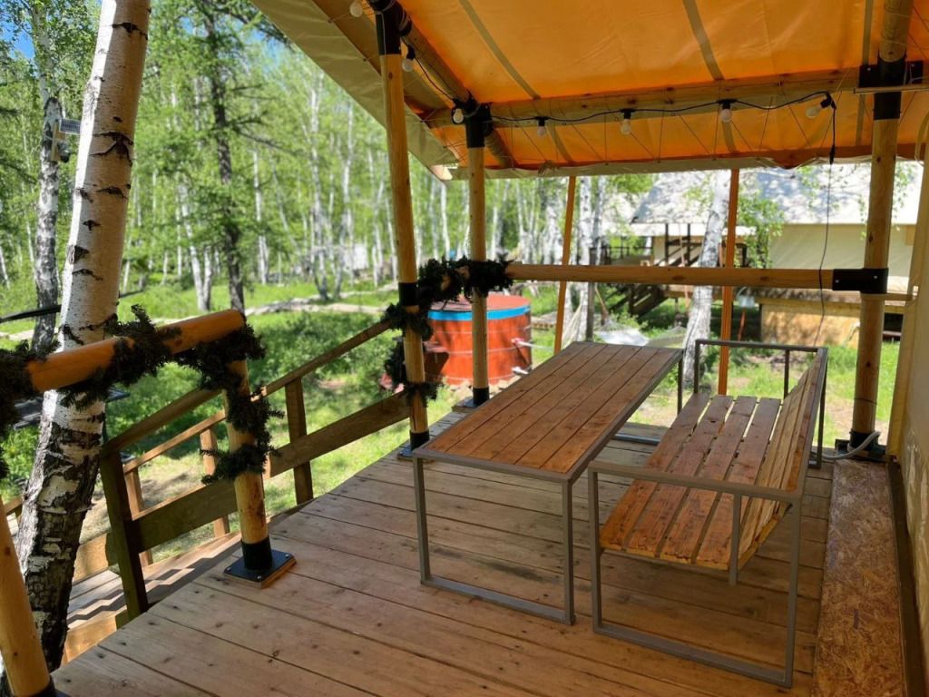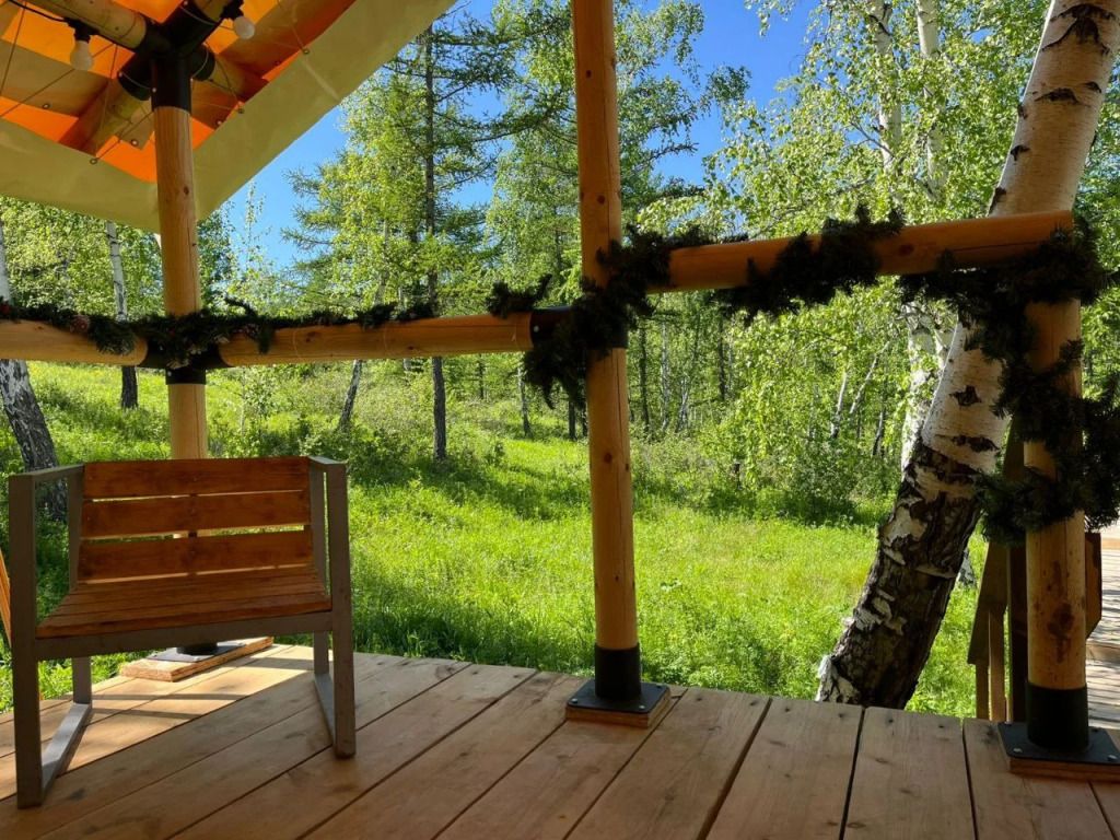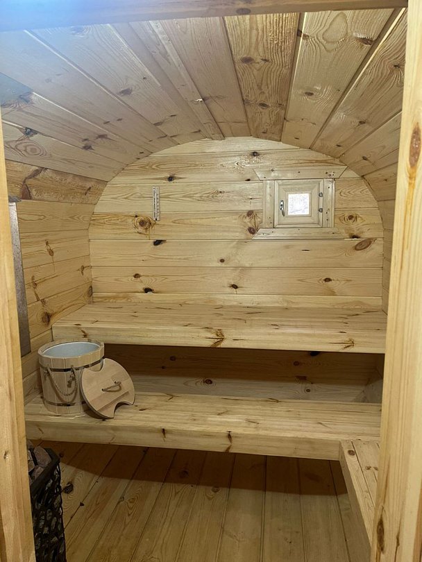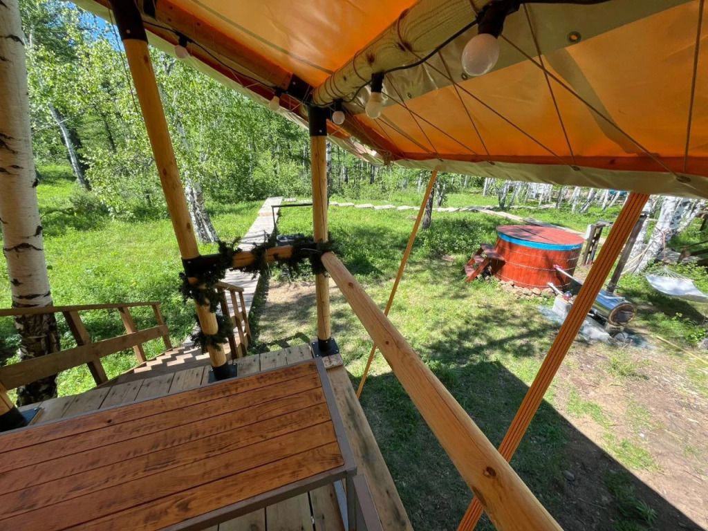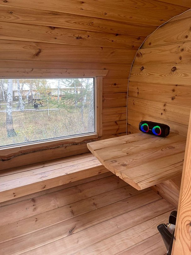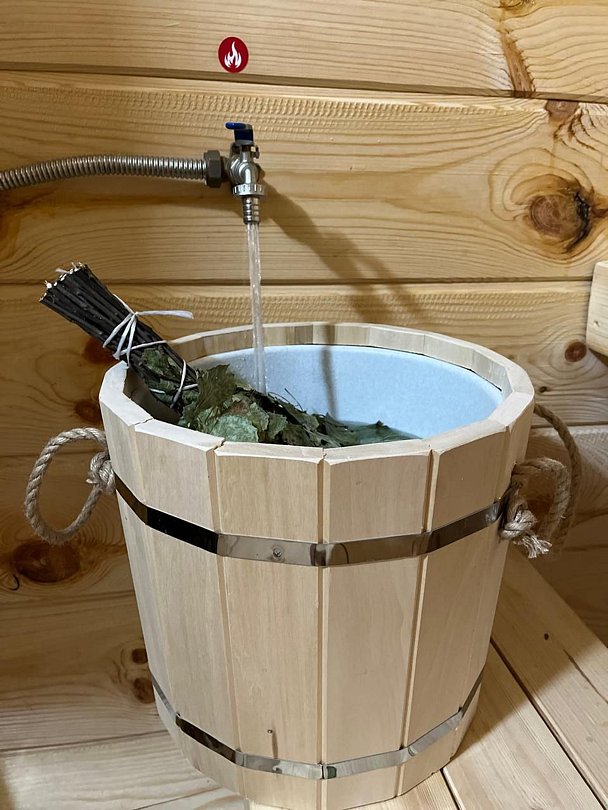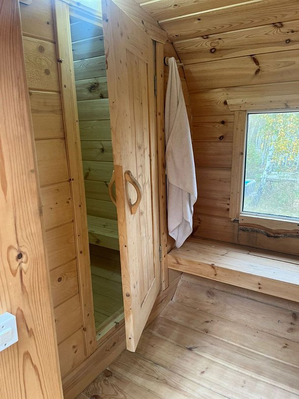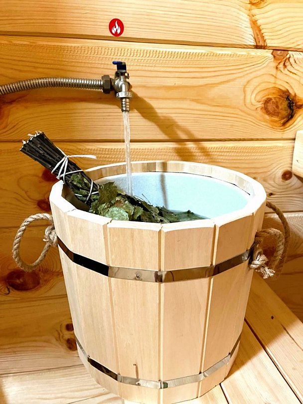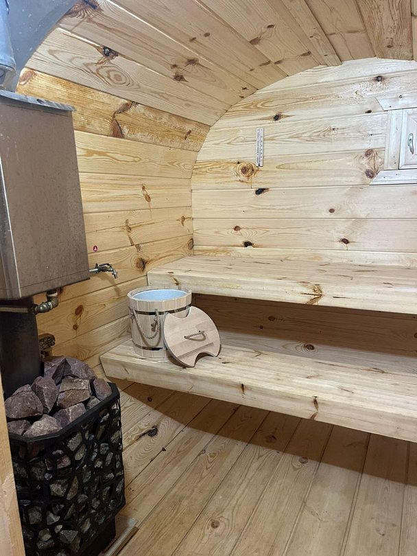 Сибирский банный чан — круглую купель с подогреваемой водой, поддерживаемой на комфортной температуре 40°C. Гостям предоставляется возможность насладиться расслабляющими банными процедурами продолжительностью до трех часов, которые могут быть включены в стоимость проживания в зависимости от выбранного тарифа.