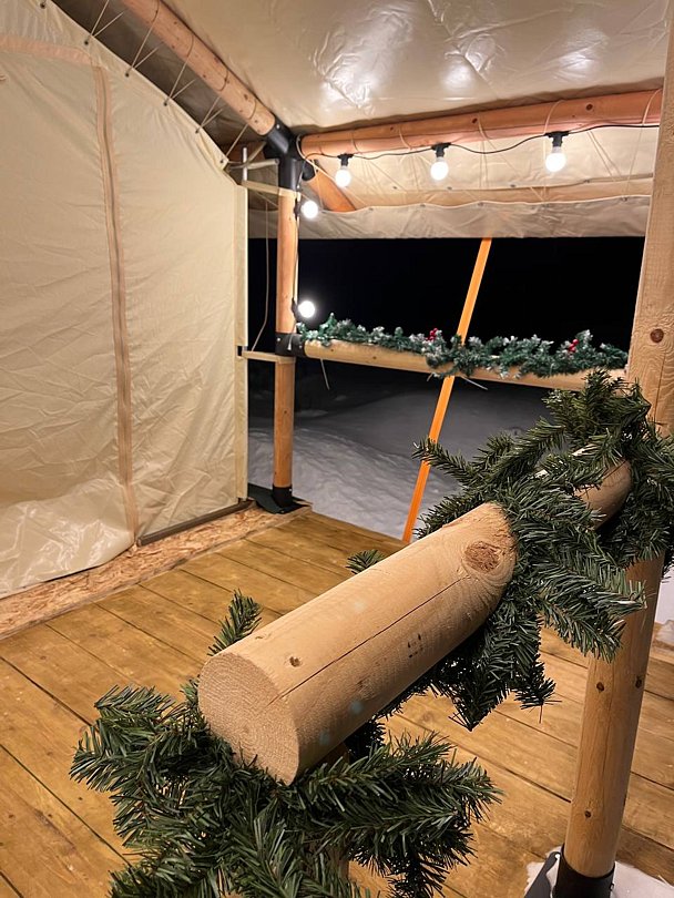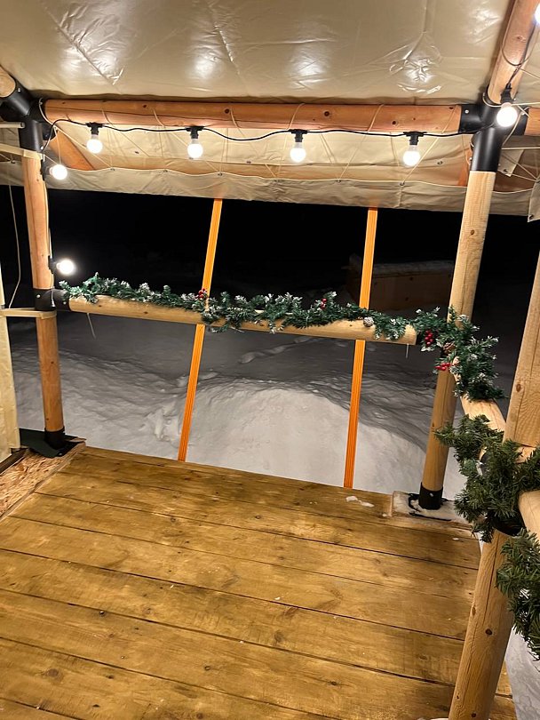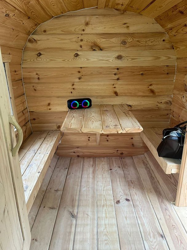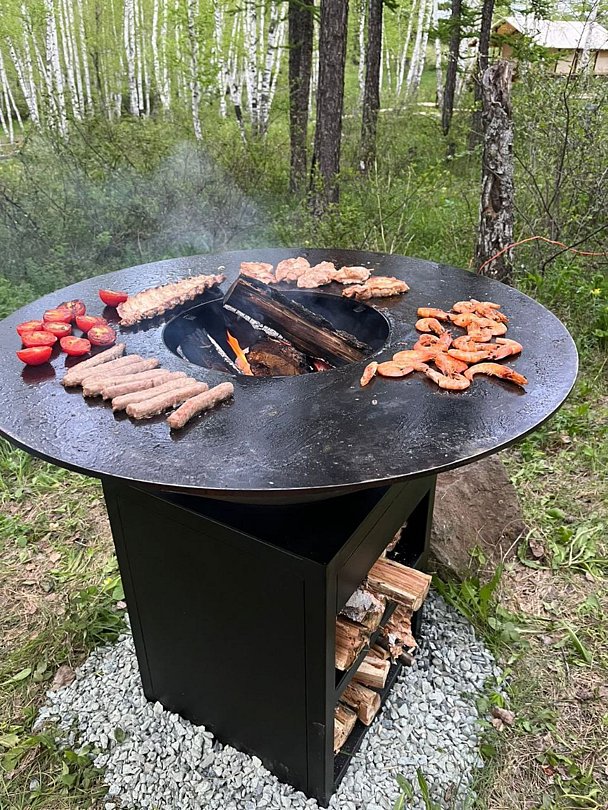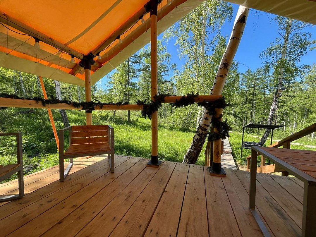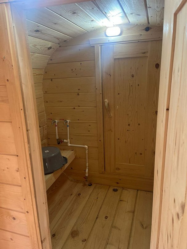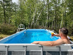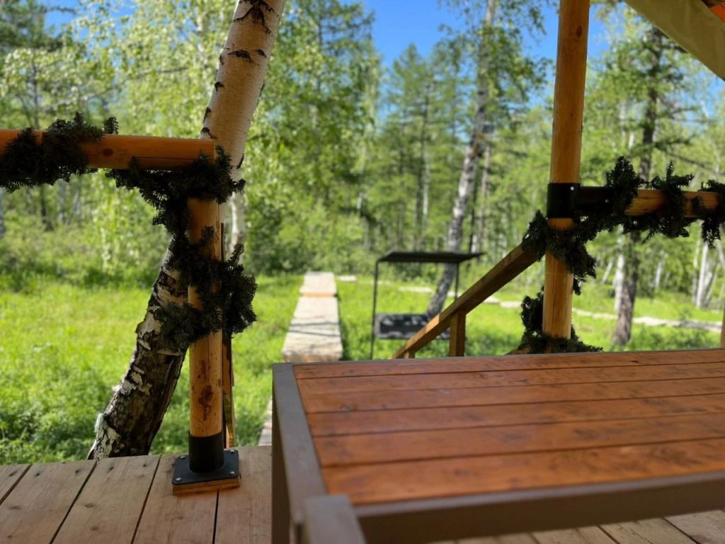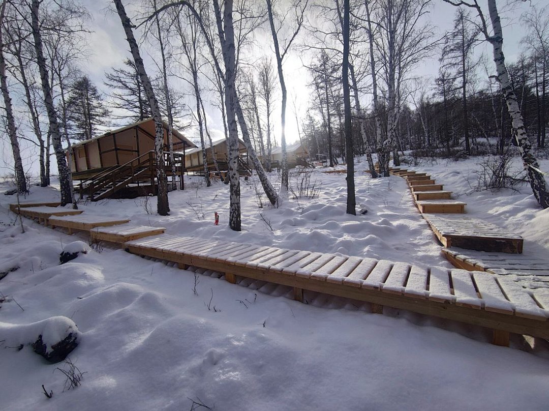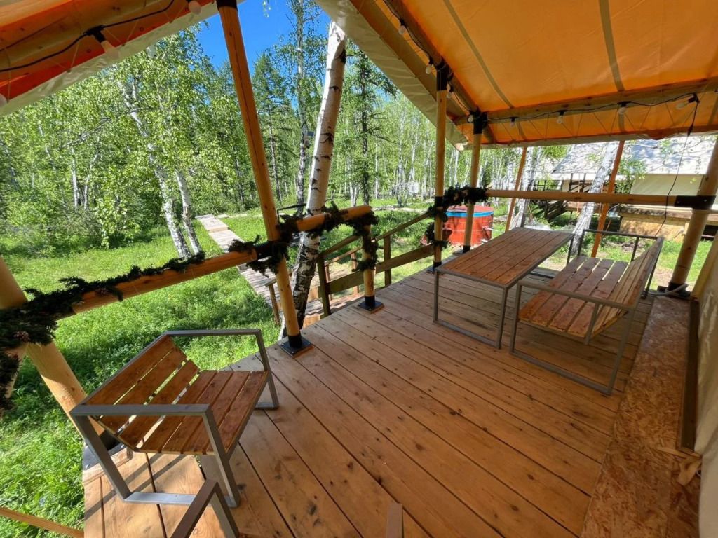 Сибирский банный чан — круглую купель с подогреваемой водой, поддерживаемой на комфортной температуре 40°C. Гостям предоставляется возможность насладиться расслабляющими банными процедурами продолжительностью до трех часов, которые могут быть включены в стоимость проживания в зависимости от выбранного тарифа.