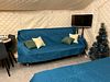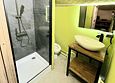 Двуспальная кровать, диван раскладной, санузел с душем, кухонный уголок с плитой,микроволновая печь, чайник и холодильник