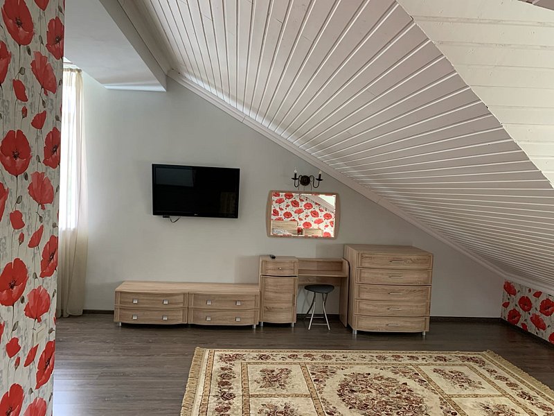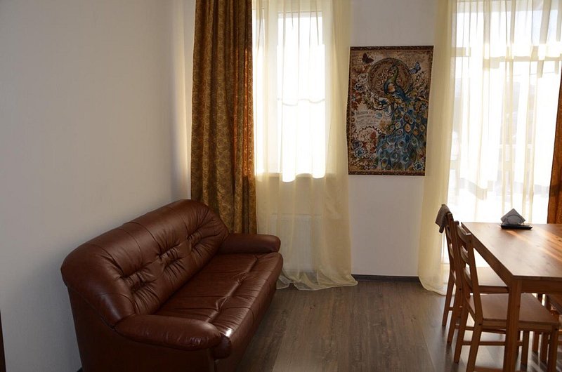 Гостевой дом представляет собой 3-этажный дом со всеми удобствами. Для размещения предлагаются 1- и 2-комнатные номера. В каждом номере имеется цифровое ТВ, беспроводной Wi-Fi, электрический чайник, двуспальная кровать, шкаф для белья, душевая кабина, санузел, фен, принадлежности для личной гигиены. Некоторые номера оснащены холодильником, микроволновой печью, кухней с обеденной зоной, посудой для приготовления и приема пищи.