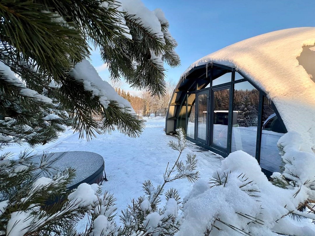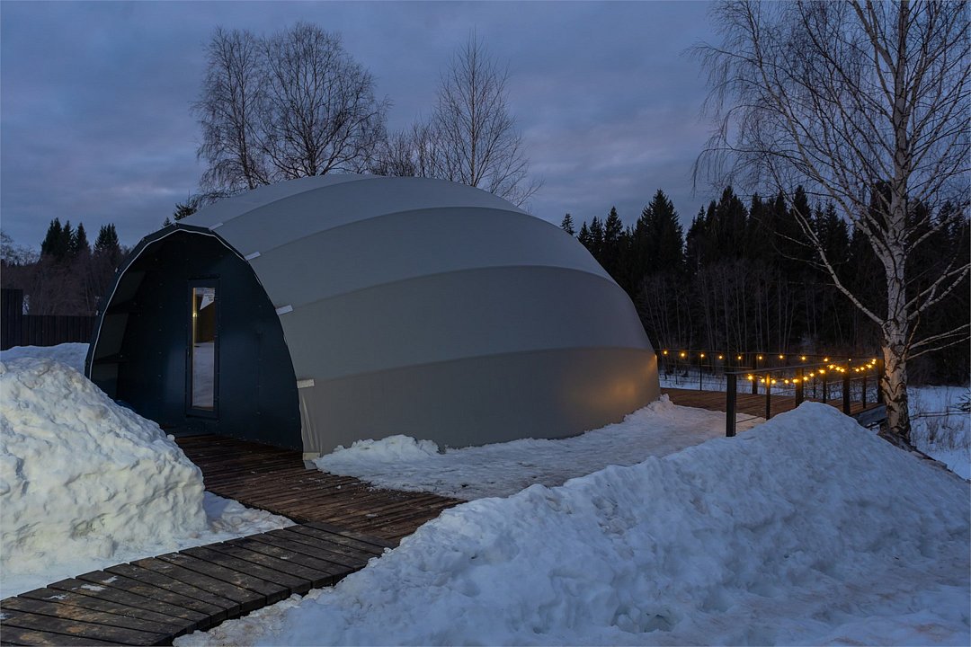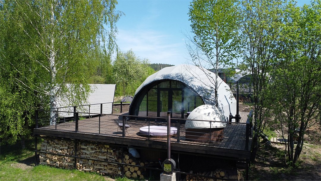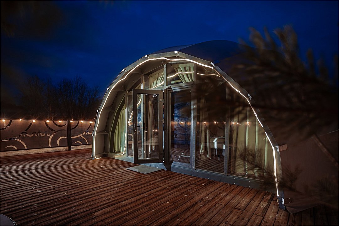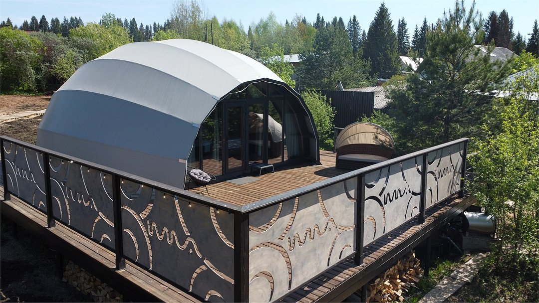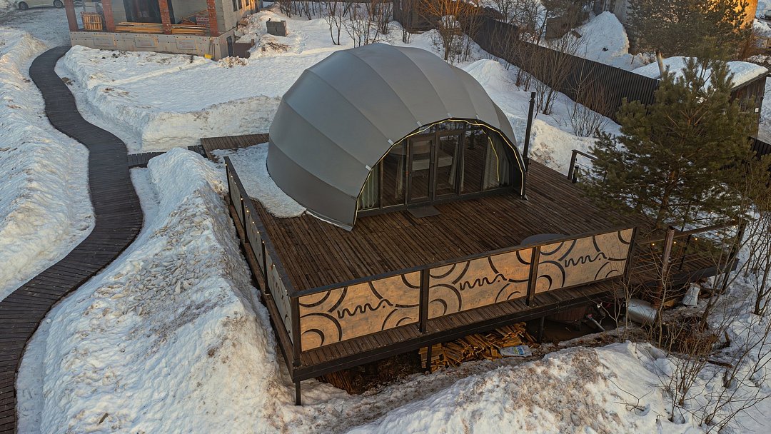 Купольный дом с горячей купелью, подсветкой и гидромассажем на закрытой террасе