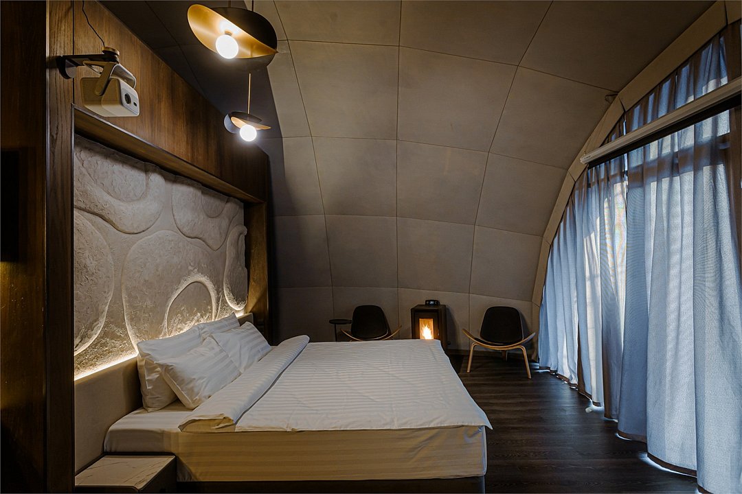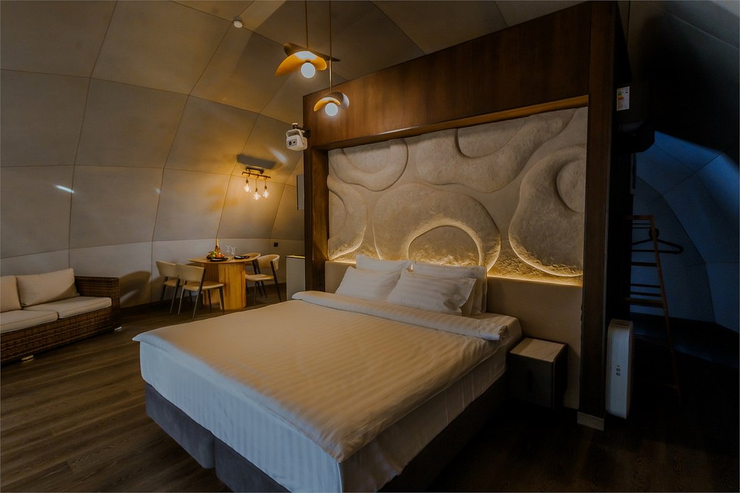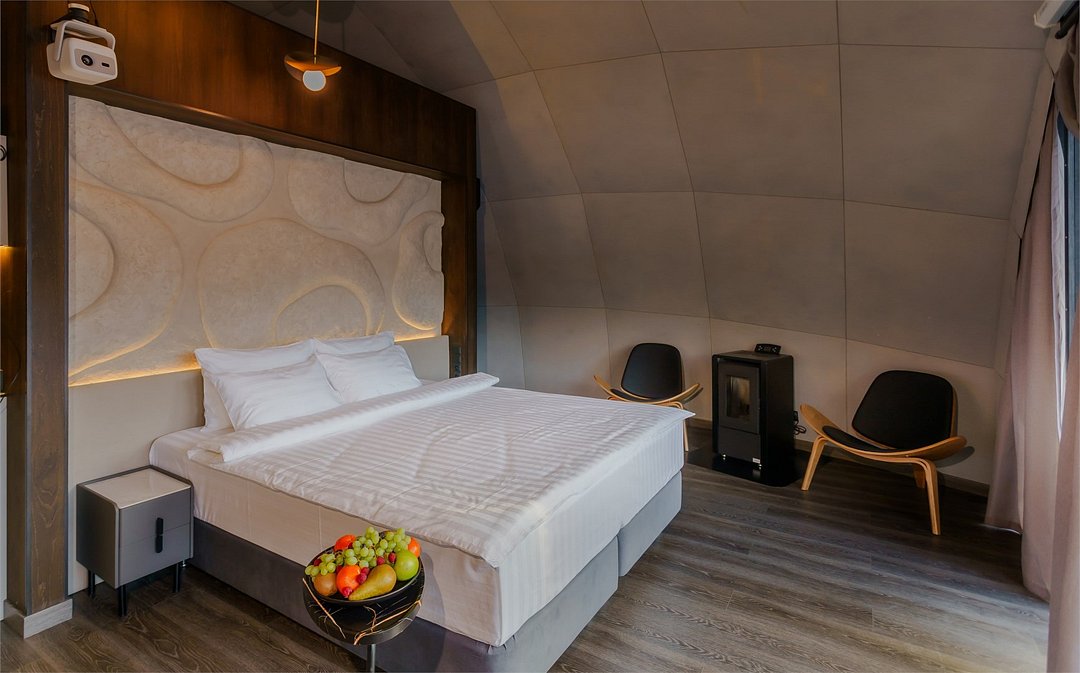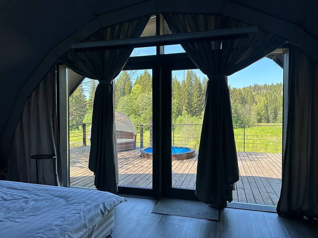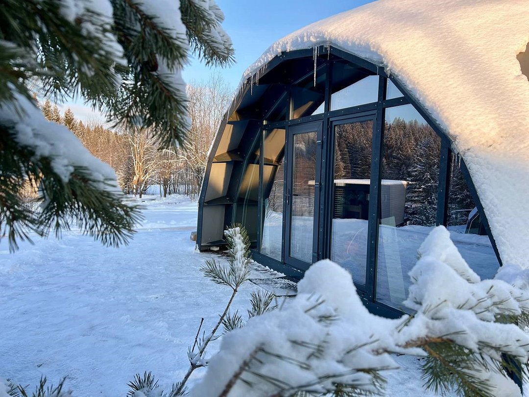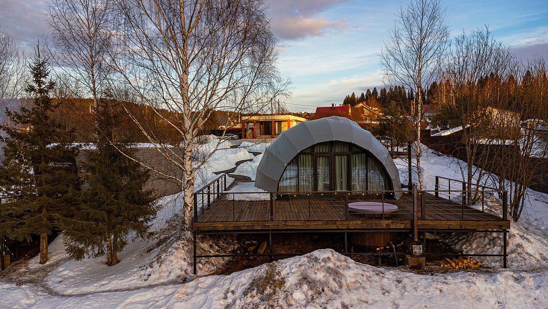 Купольный дом с горячей купелью, подсветкой и гидромассажем на закрытой террасе