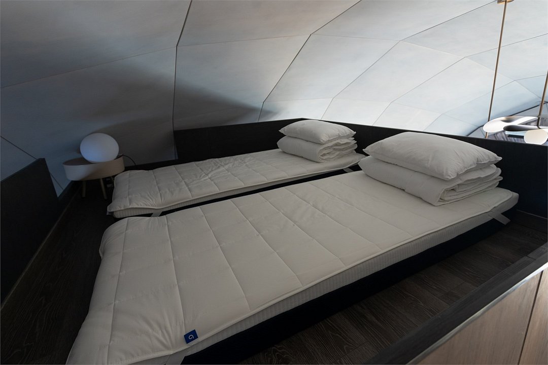 - четыре спальных места, на первом и втором ярусах дома. На выбор возможно предоставить двуспальный или односпальный вариант размещения (одна двуспальная кровать и две односпальные, или четыре односпальные);