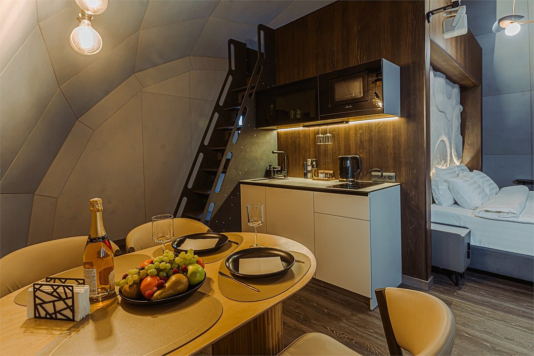 Чтобы вечера были не только уютными, но и вкусными, комфортными, в каждом доме есть чайник, мини-холодильник, индукционная плита для приготовления пищи, фен, фильтр для воды.