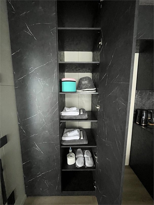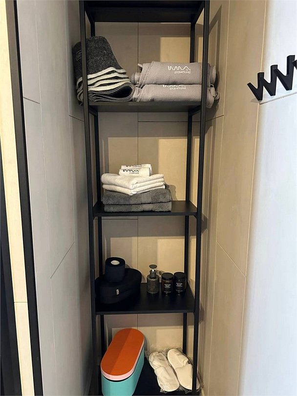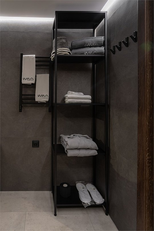 Дома полностью укомплектованы качественной посудой, средствами личной гигиены и премиальной косметикой, в домах всегда имеются полотенца разных видов, тапочки, халаты, а также качественное постельное бельё и подушки разной жёсткости на выбор.