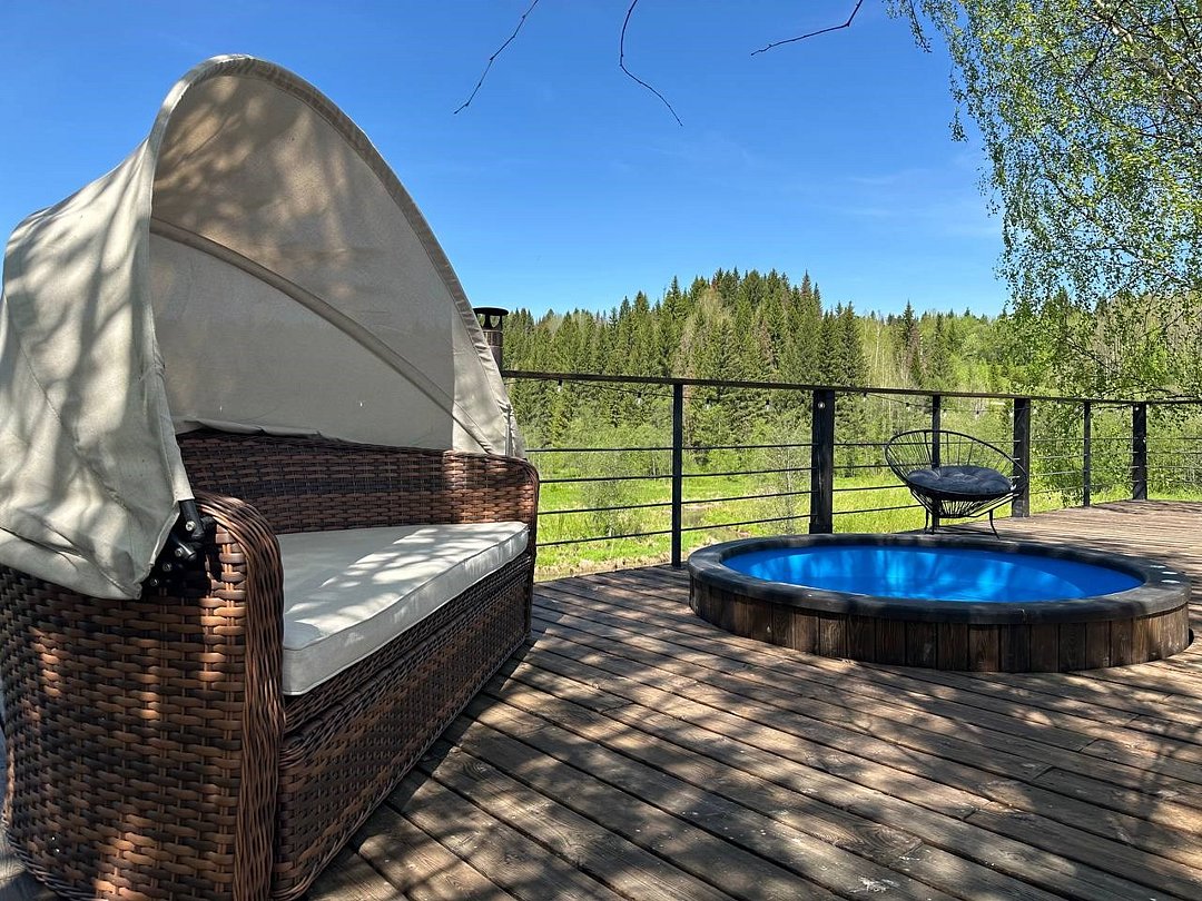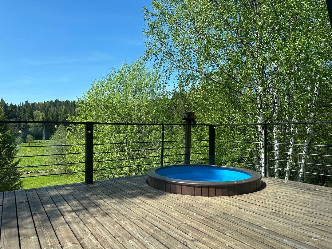 Новый, стильный и современный дом в живописном месте. Купель и сауна оплачиваются дополнительно.